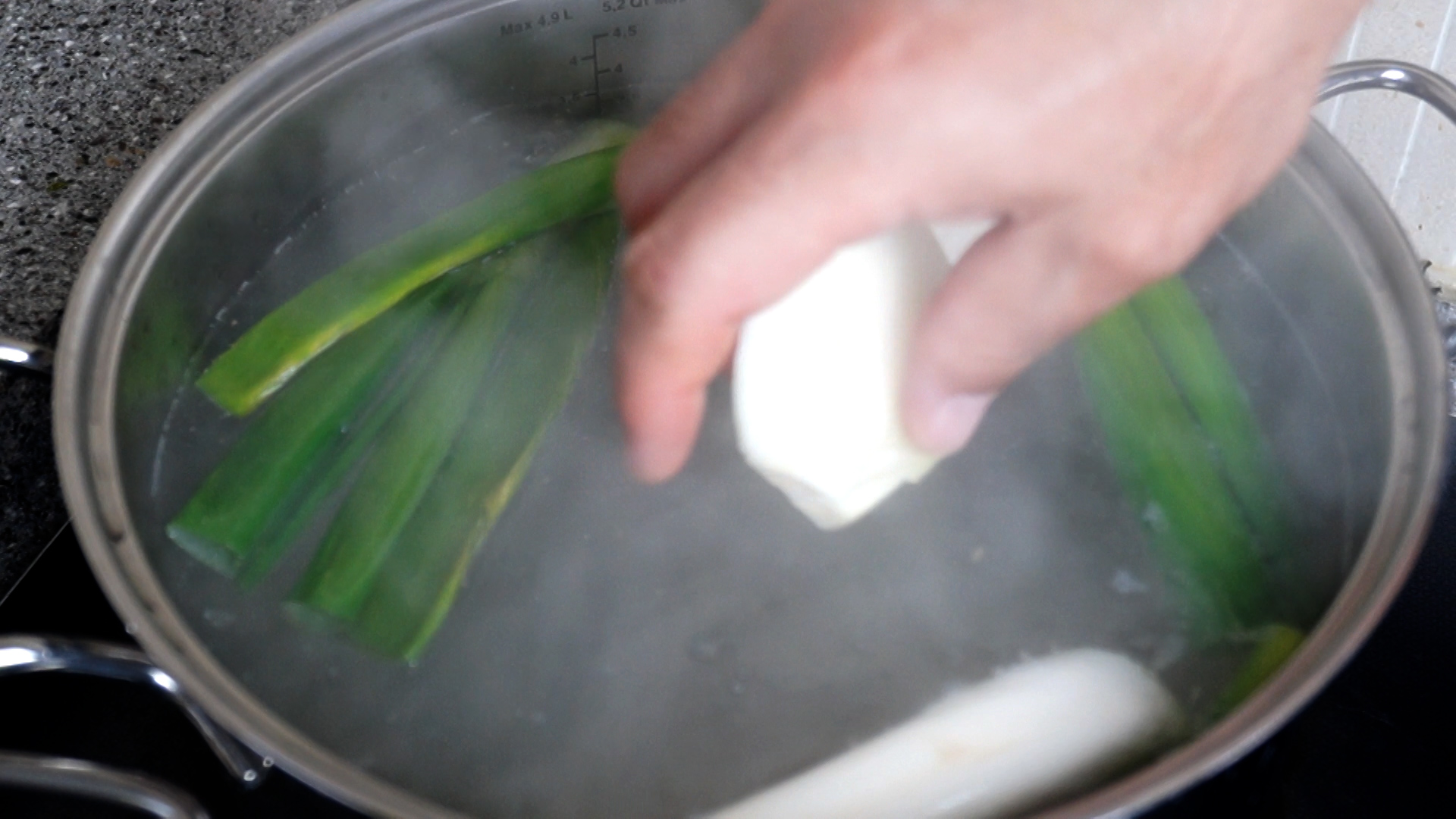 2. 대파는 1대 깨끗히 세척해서 뿌리까지 전부 넣어주세요.