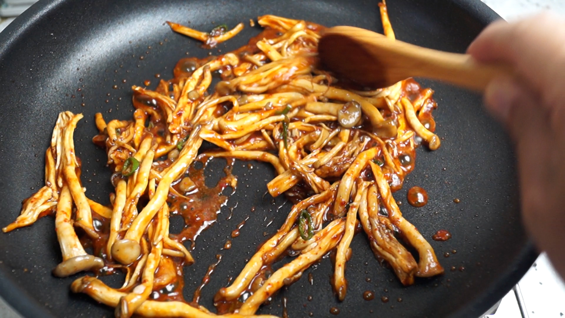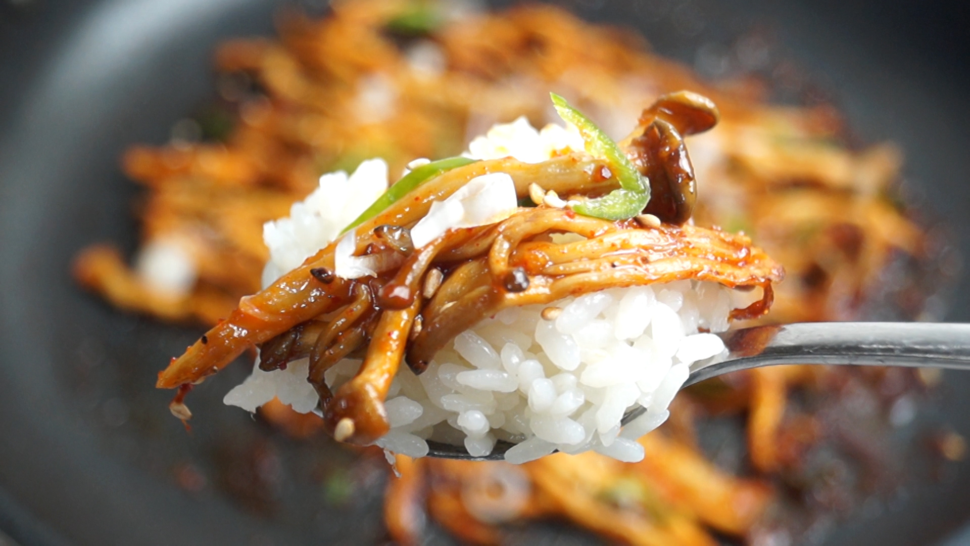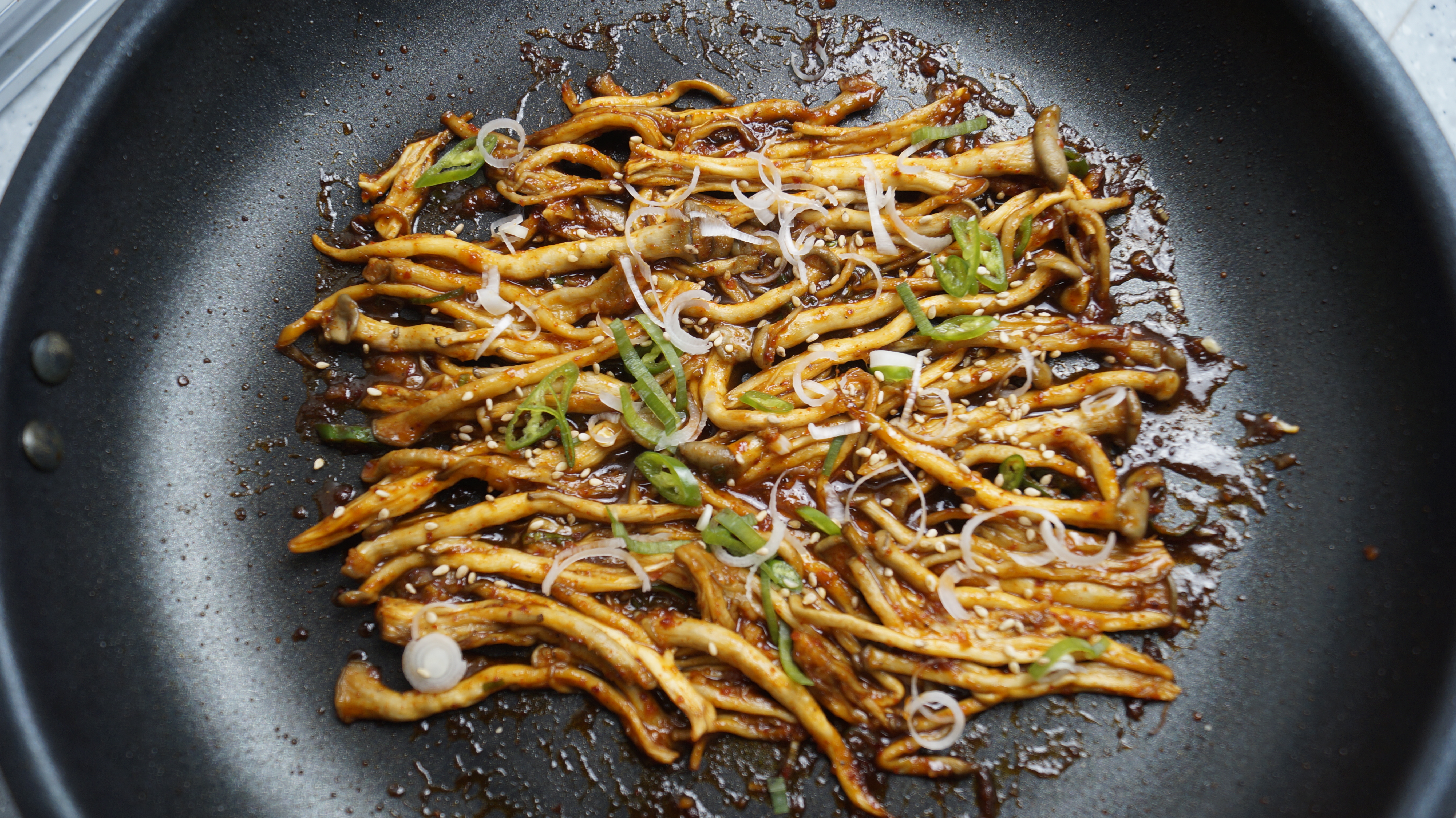 버섯수분감을 최대한 잡아서 쫀득하게 볶아 맛있는 양념에 볶아 냈더니 고기보다 맛있다고 난리났던 버섯볶음