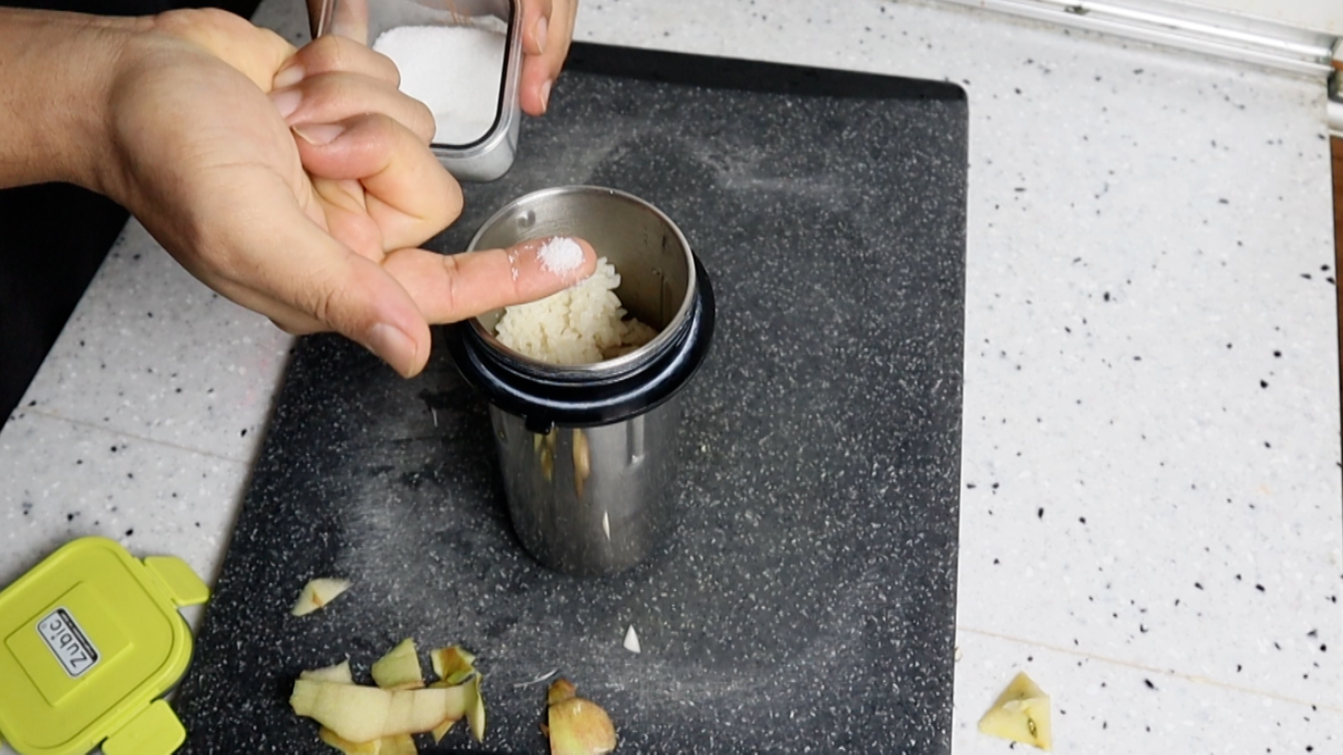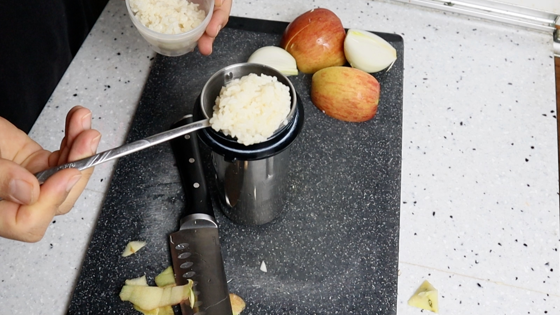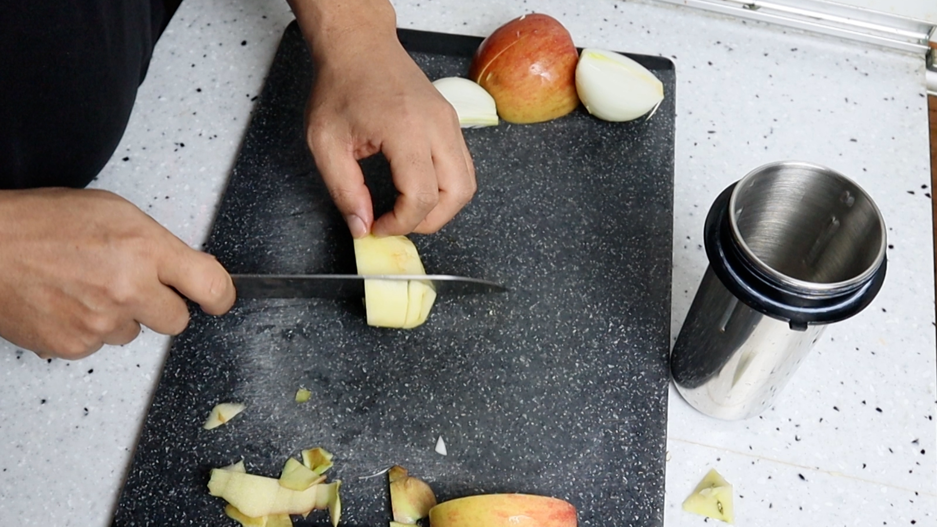 7. 사과도 분량껏 썰어 믹서기 통에 넣어주세요.