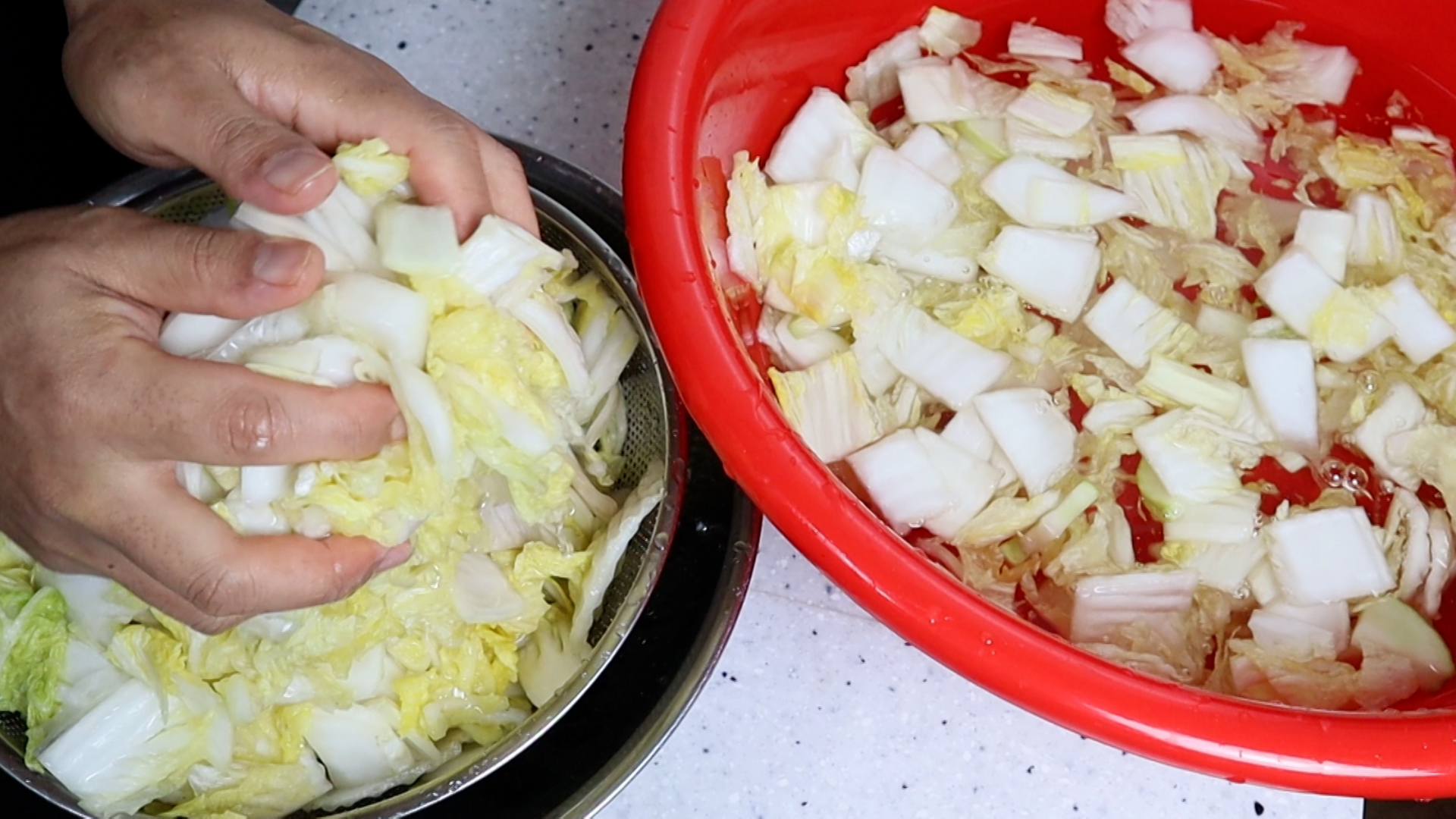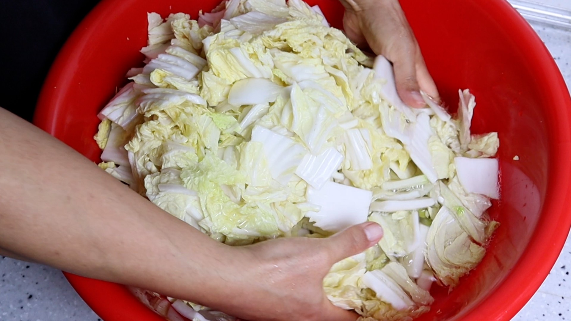 19. 배추와 무우가 말랑말랑하게 절여졌는지 확인하시고 좀 억세면 절이는 시간을 늘여주세요.