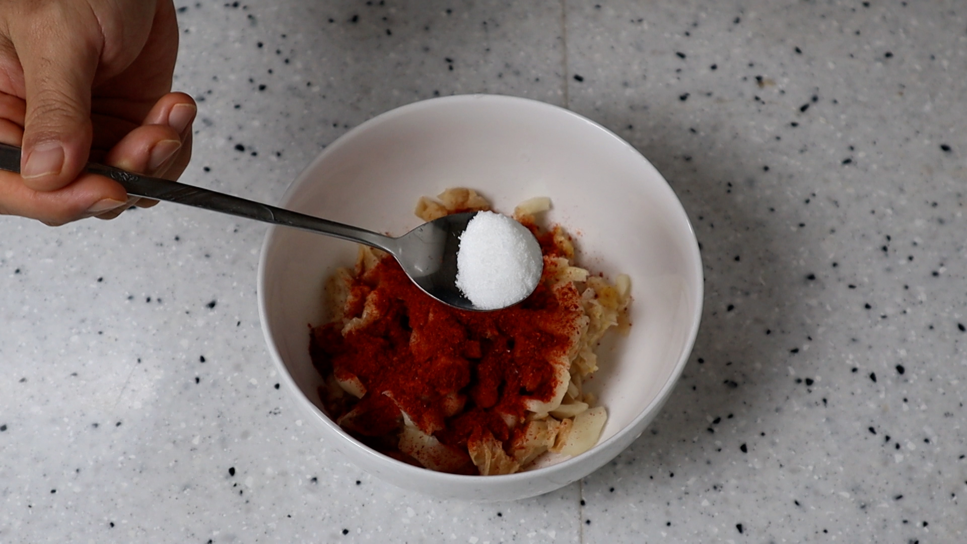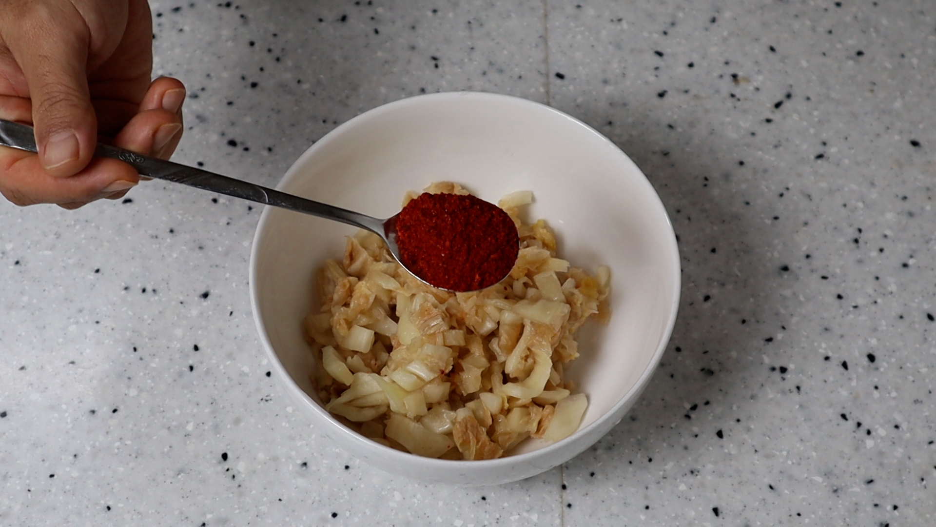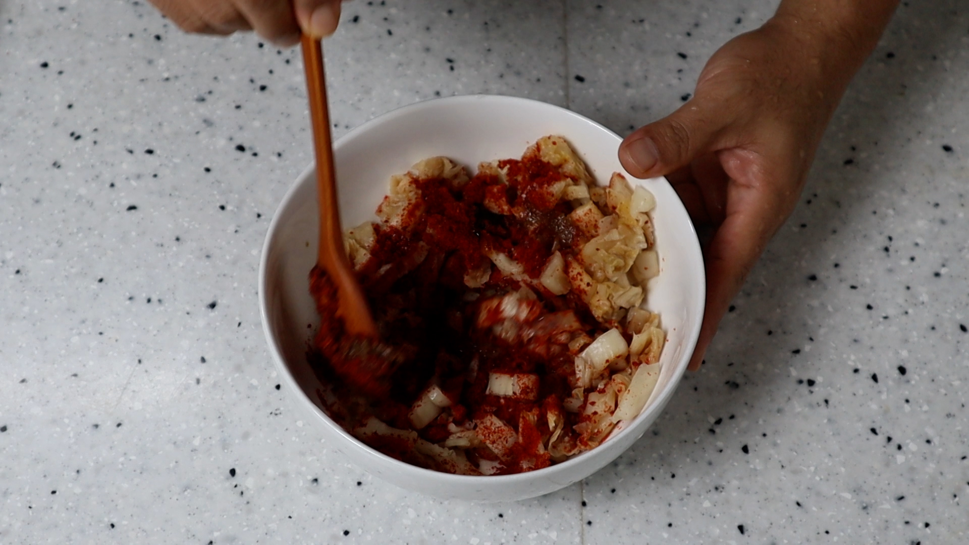 16. 섞어놓은 김치를 전부 부어주세요.