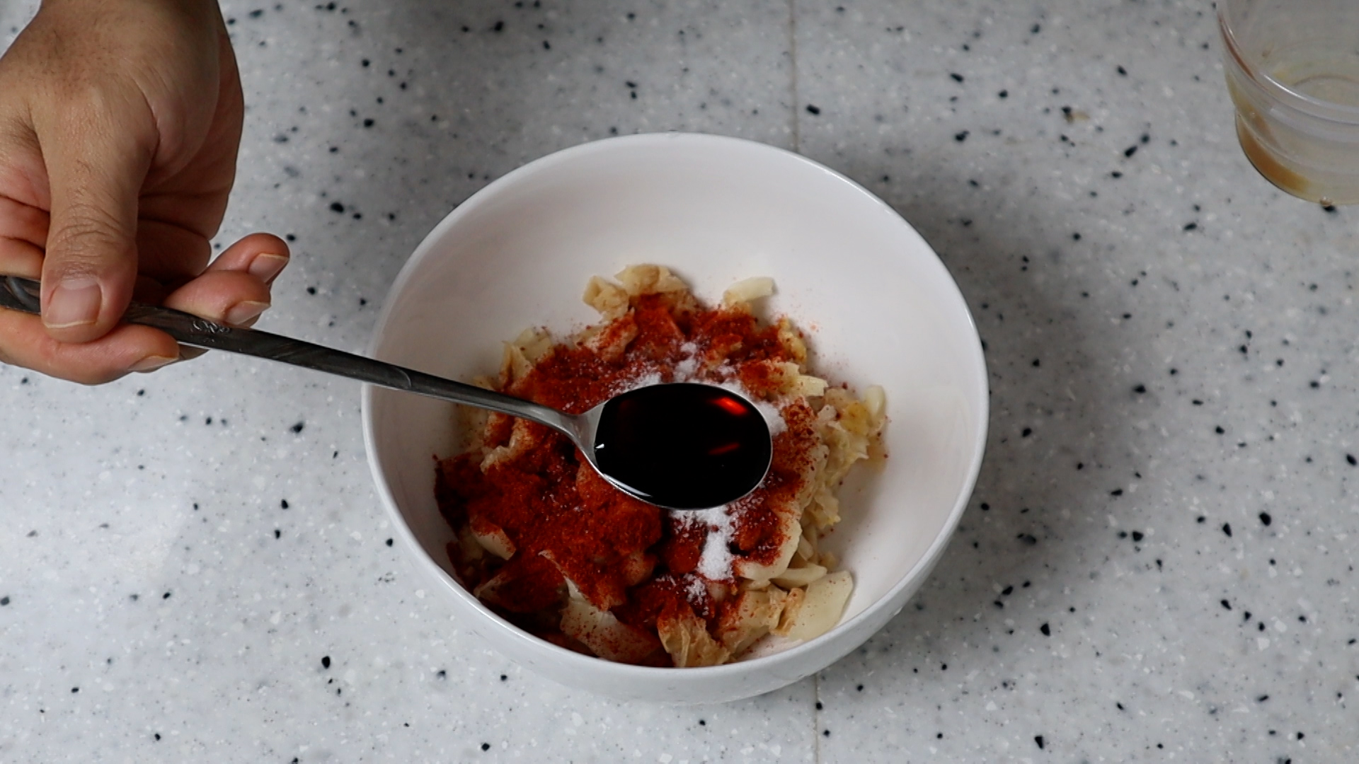 7. 멸치액젓을 넣어주세요. 액젓이 없을땐 참치액을 멸치액젓의 1.2배 넣어보세요.