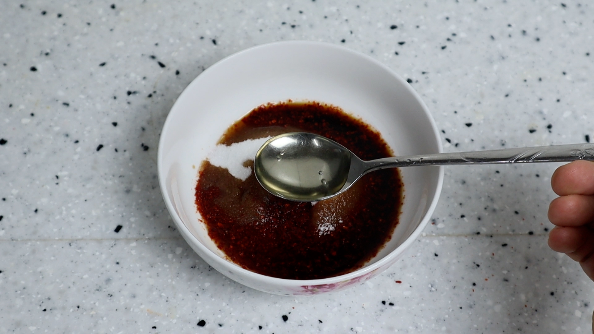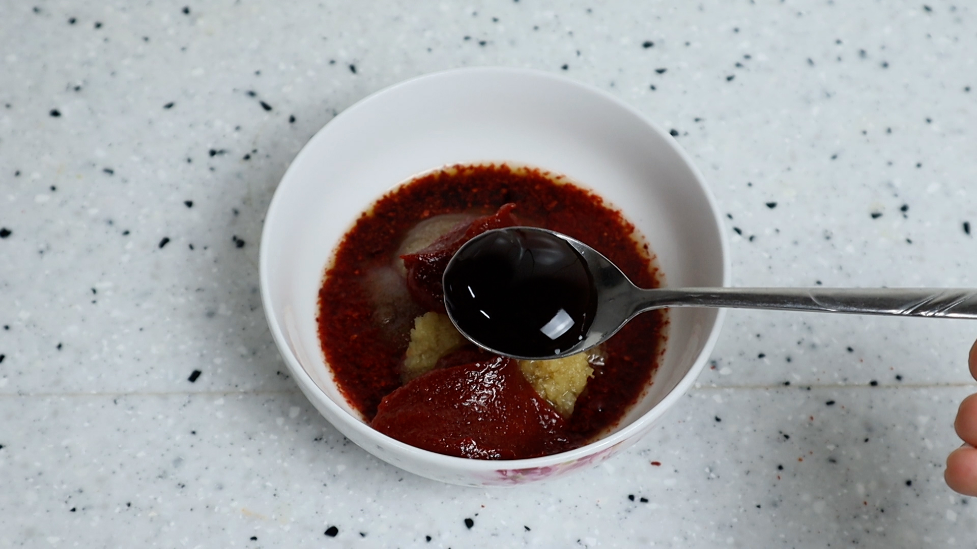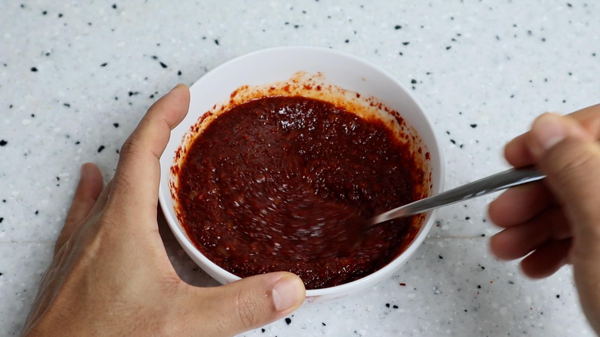 1. 양념란에 적힌 재료를 한데 넣고 골고루 섞어주세요. 고춧가루는 중간입자 고춧가루입니다. 매운맛을 올리려면 땡초가루를 절반씩 섞어보세요.