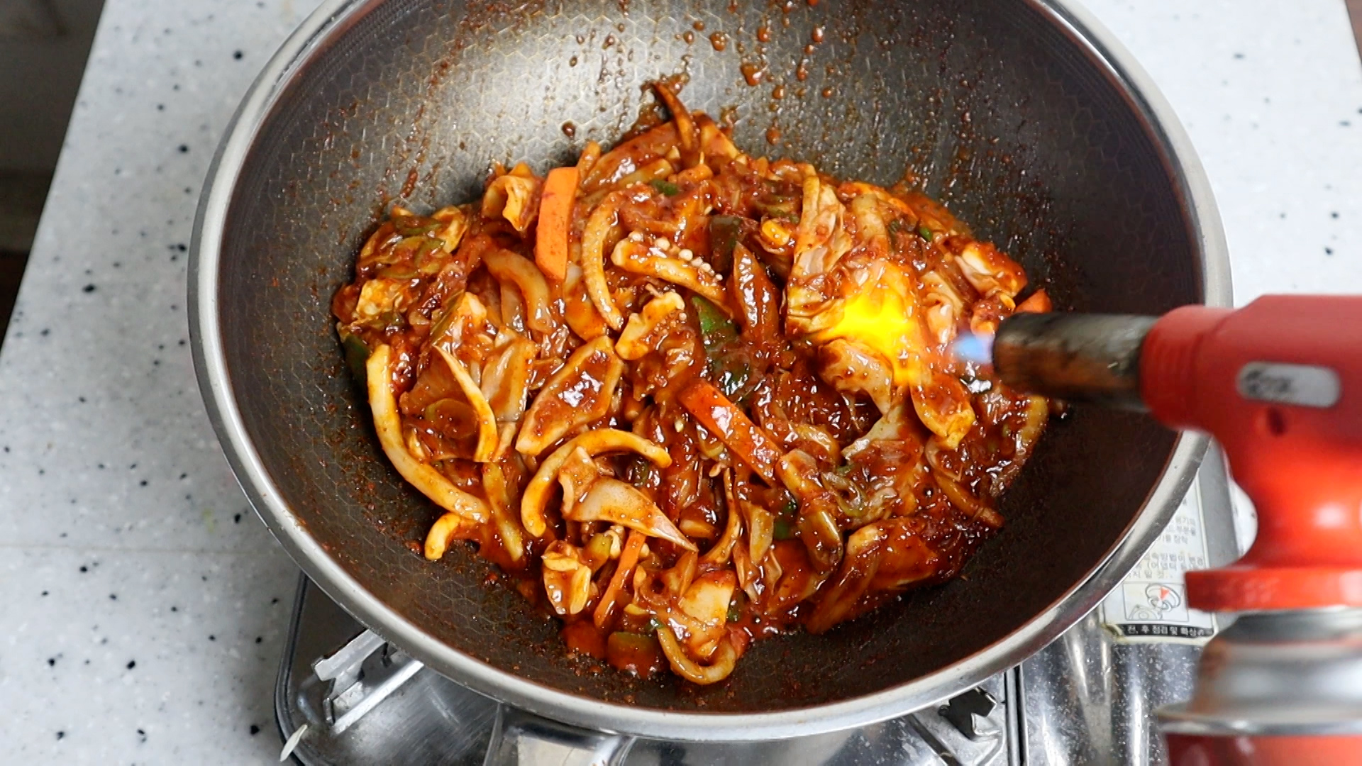 21. 오징어볶을때도 토치질 살짝 해주시면 불맛이 살짝 더해져 좀더 맛있어요~