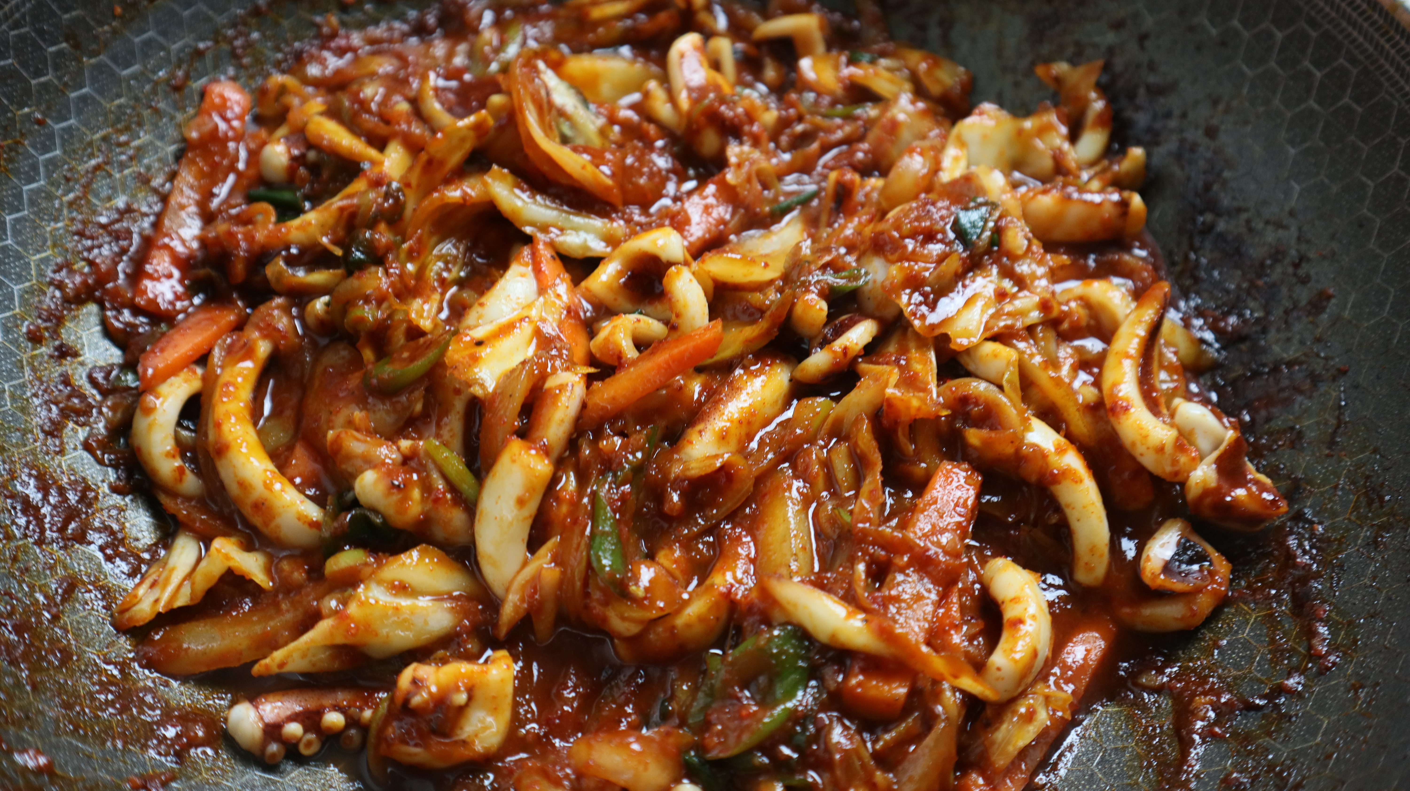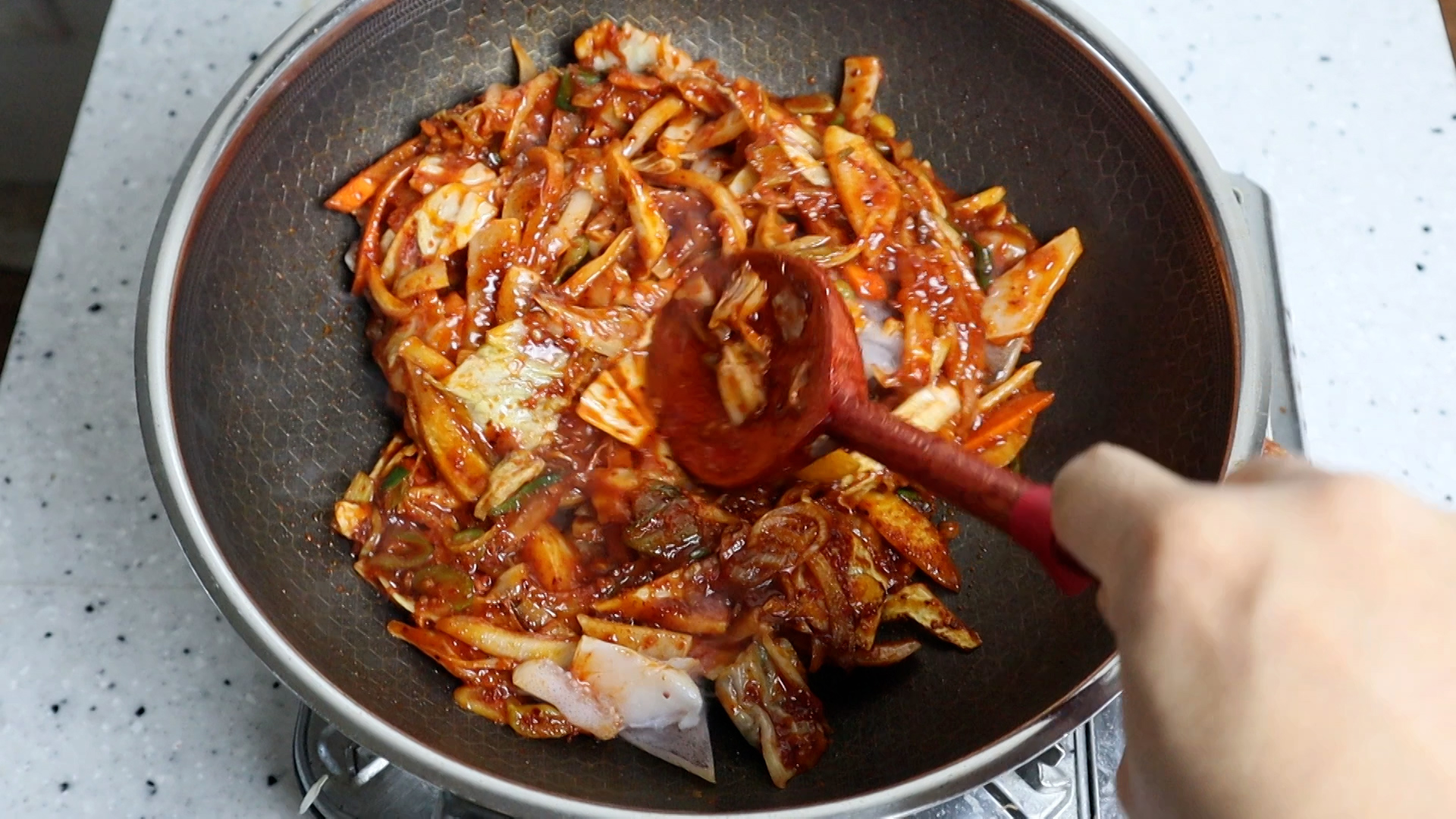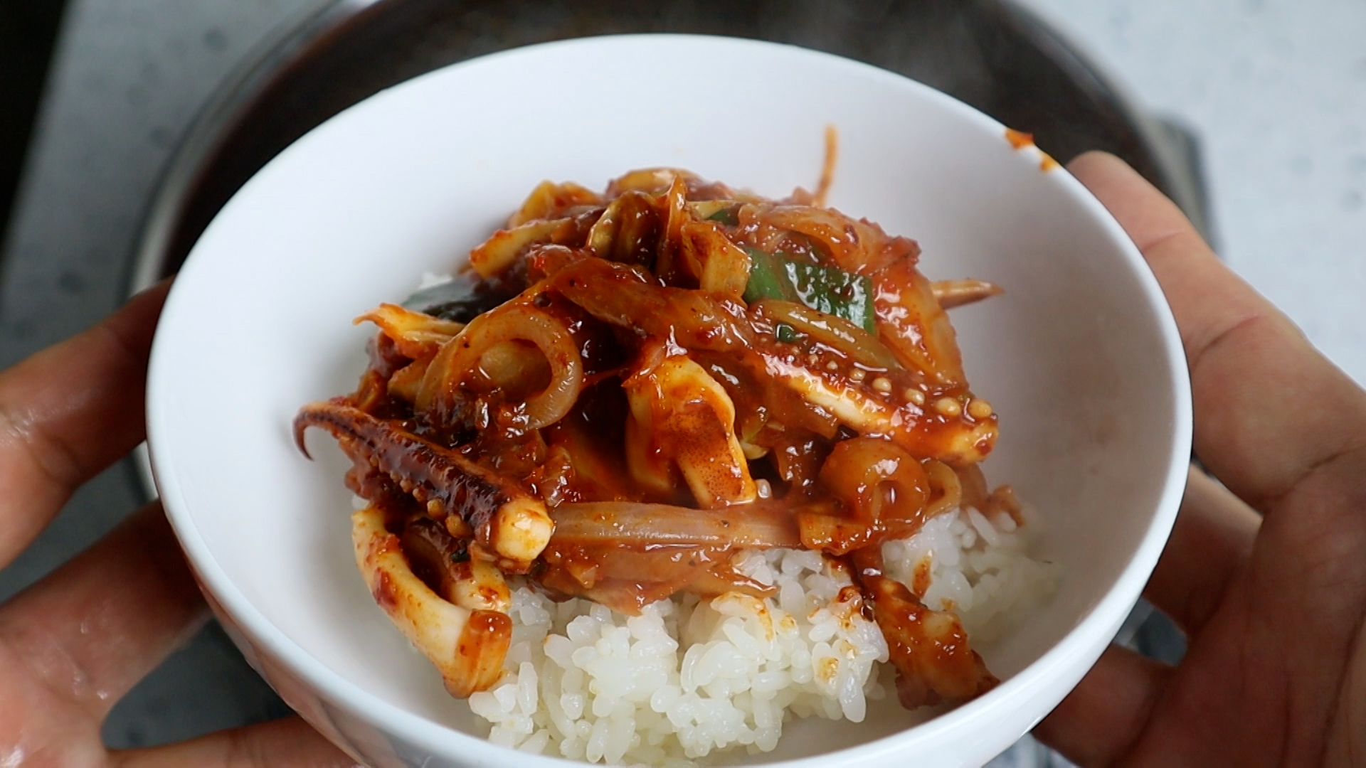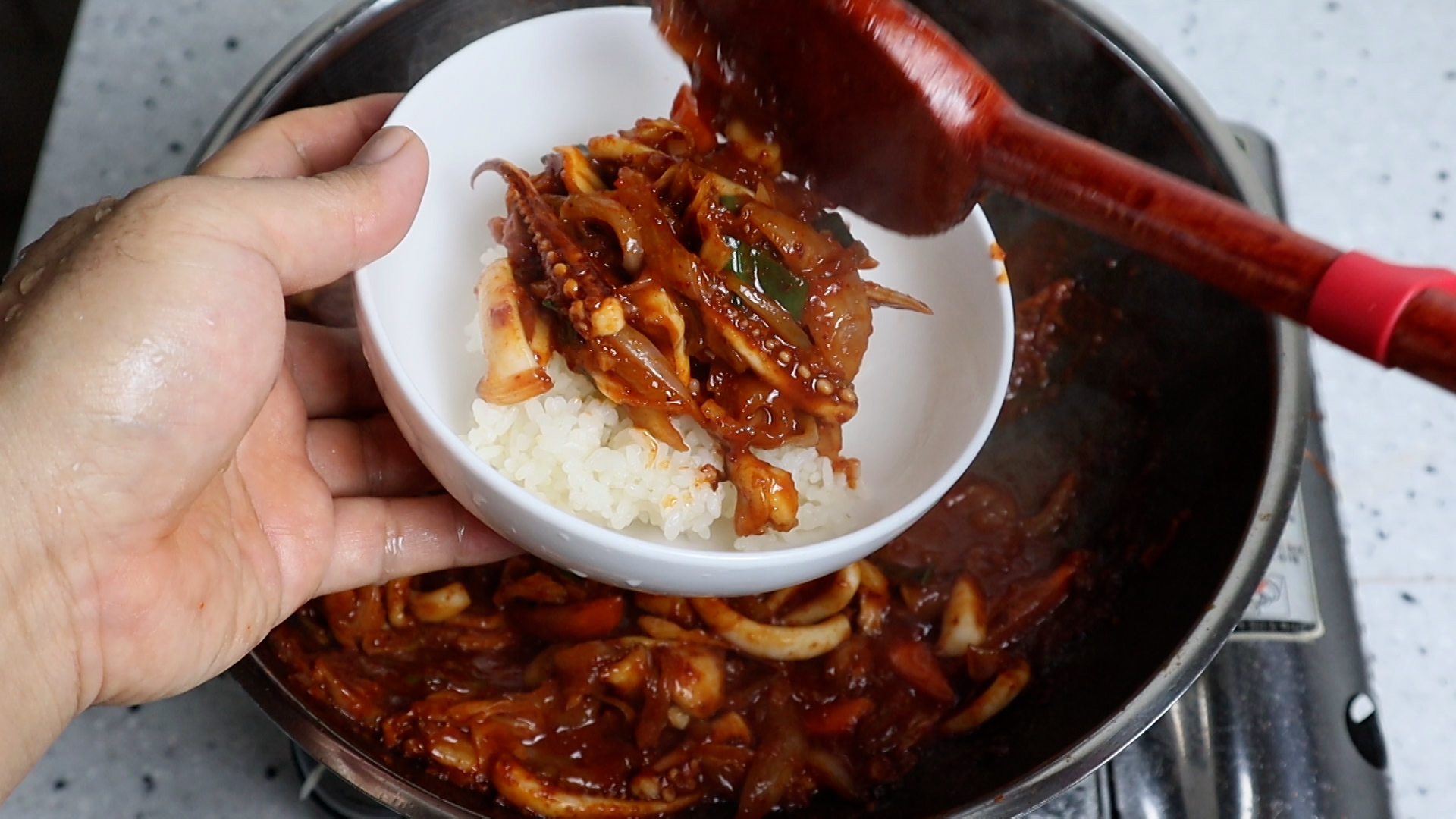 꾸덕꾸덕하게 수분감 없이 볶아서 밥위에 올려서 슥슥 비벼 먹으면 정말 맛있는 오징어볶음 황금레시피!