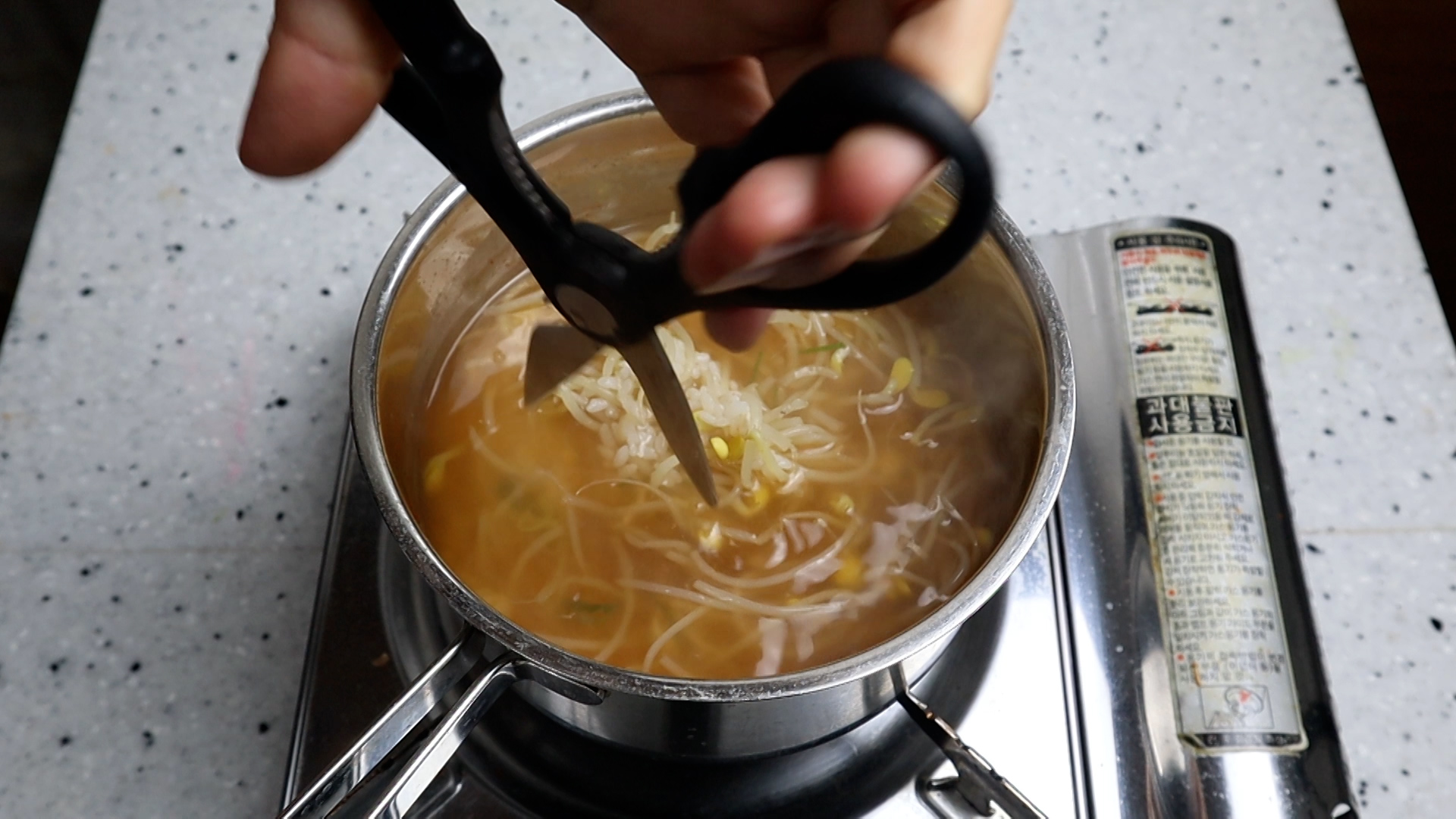 16. 혹시나 콩나물이 너무 길어서 먹기 불편하신분들은 가위로 2~3번 잘라주면 딱좋아요!