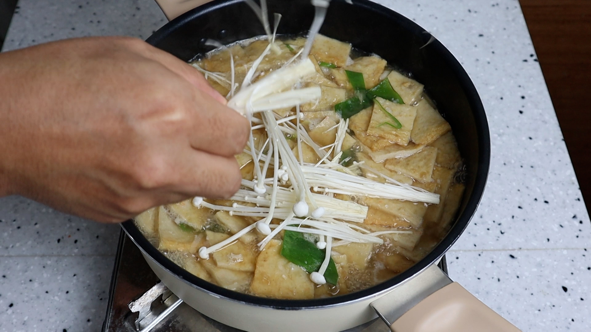 16. 기호에 따라 팽이버섯 반봉 75g 을 찢어 넣어보세요.