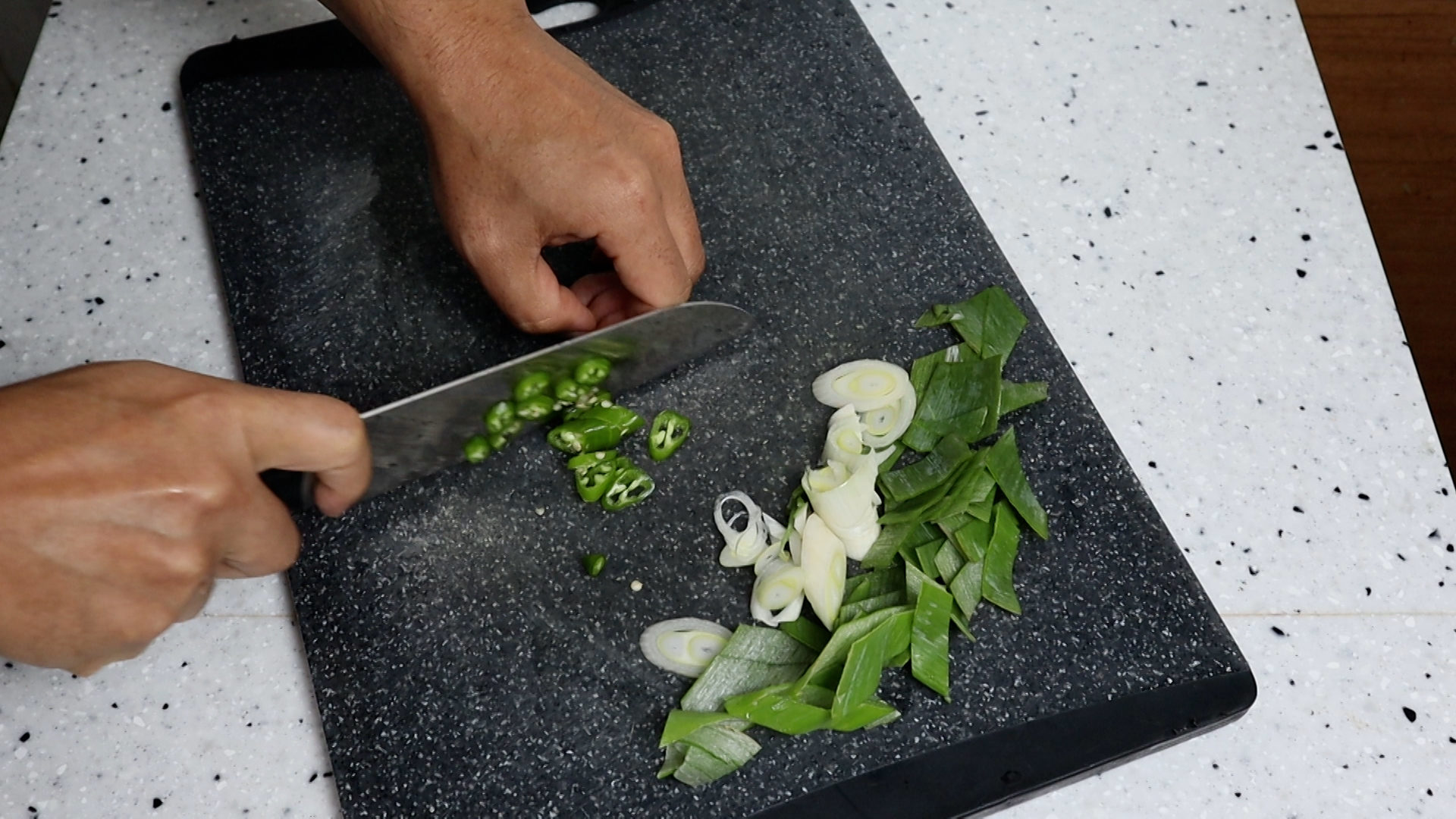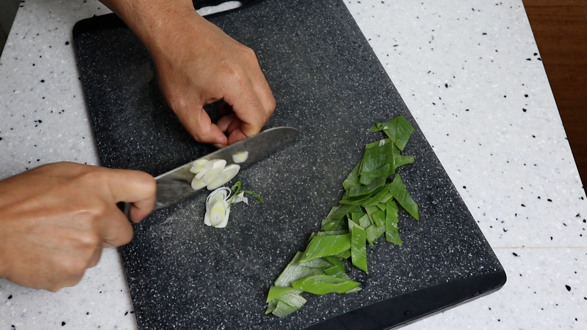 1. 대파는 초록대 흰대를 섞어서 4~5큰술 분량을 썰어주세요.