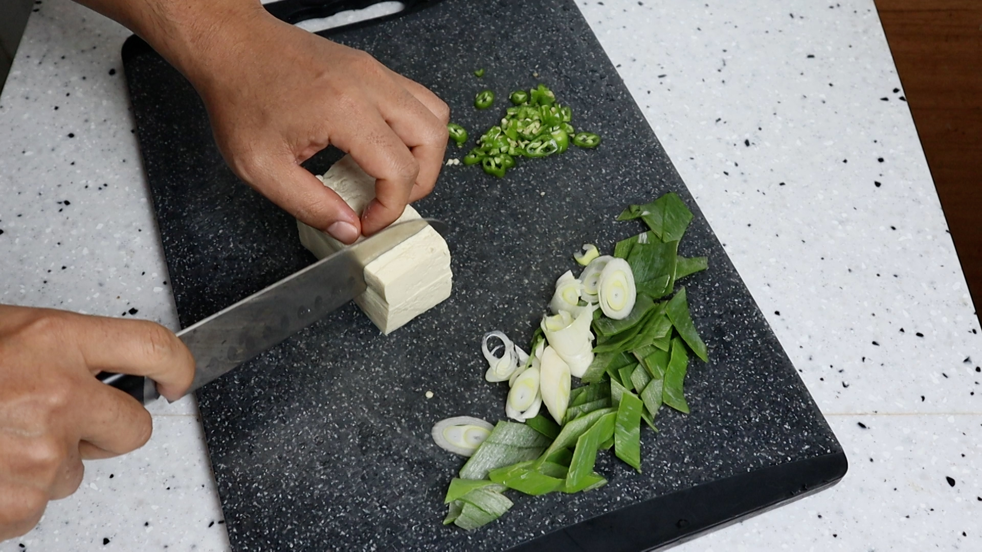 3. 두부는 무조건!! 단단한걸로 먹기 좋은 크기로 썰어주세요. 찌개용은 국물만 싱거워 지니 비추입니다!