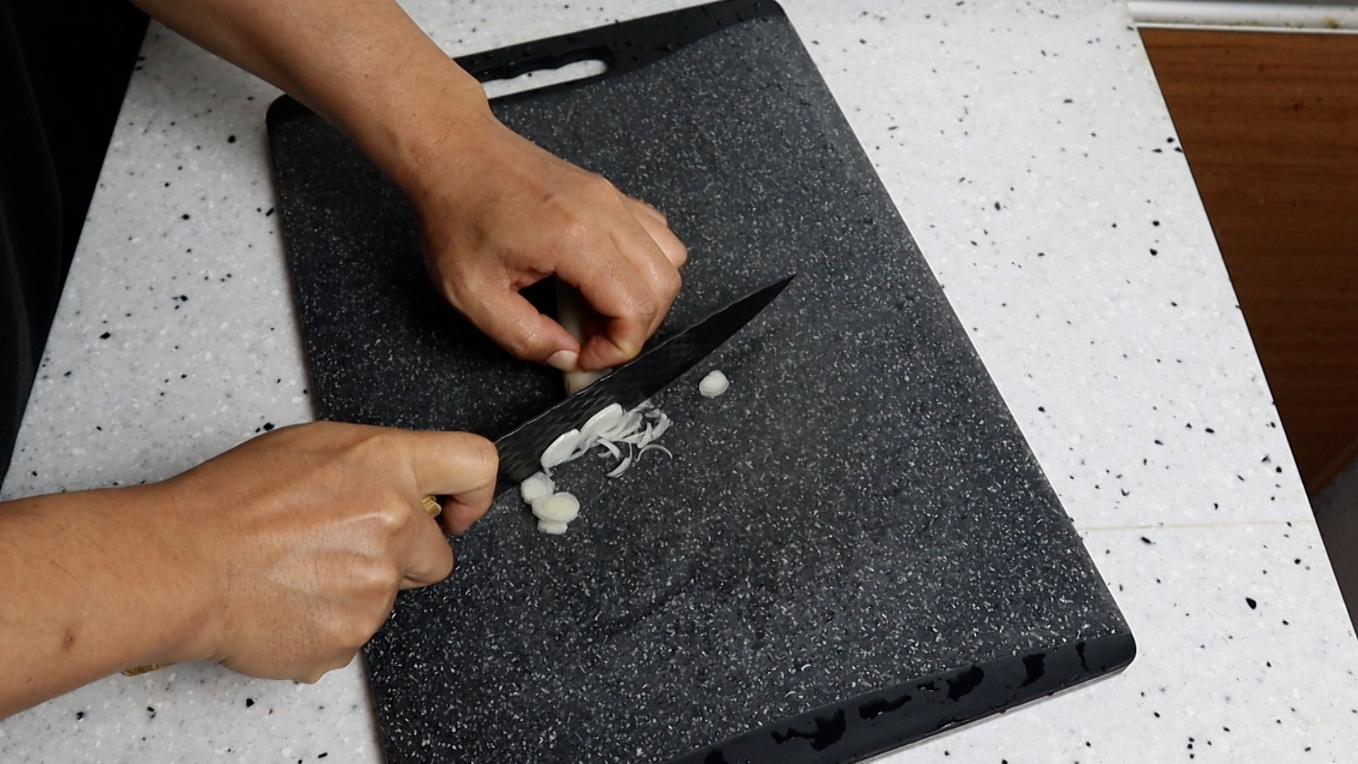 2. 양파는 너무 많이 넣으면 단맛이 강해질수 있으니 2~3mm 두께로 2번 정도만 썰어 1줌만 준비해주세요.