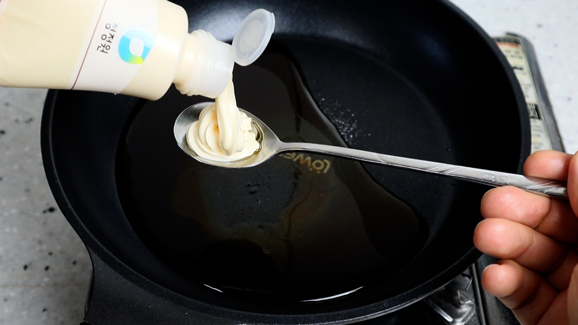 10. 중불로 불을 올리고 끓기 시작하면 30초 정도 섞어가면서 끓여주세요. 마요네즈가 완전히 풀릴필요는 없으니 일일히 다 풀려고 하진 마세요.