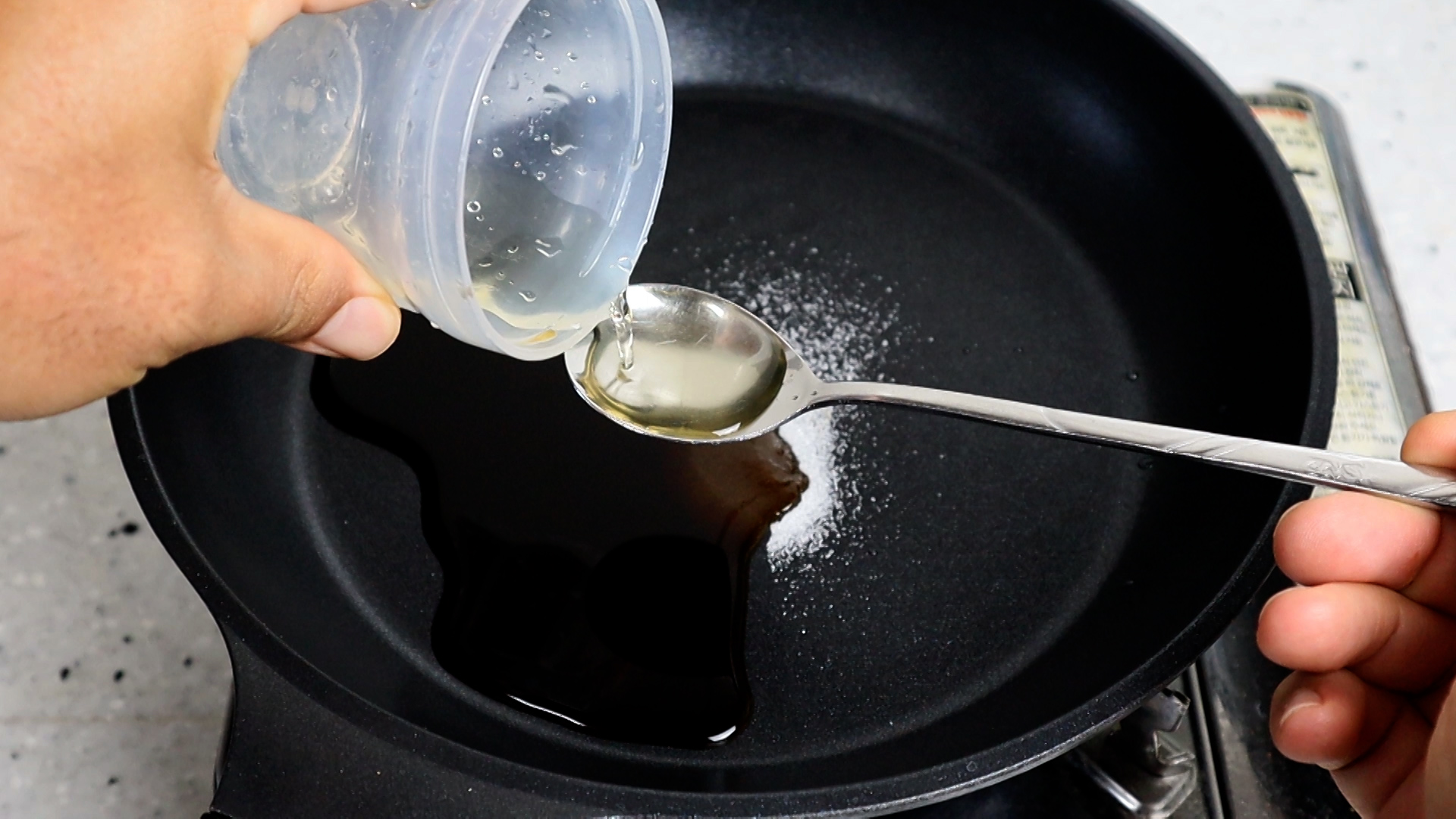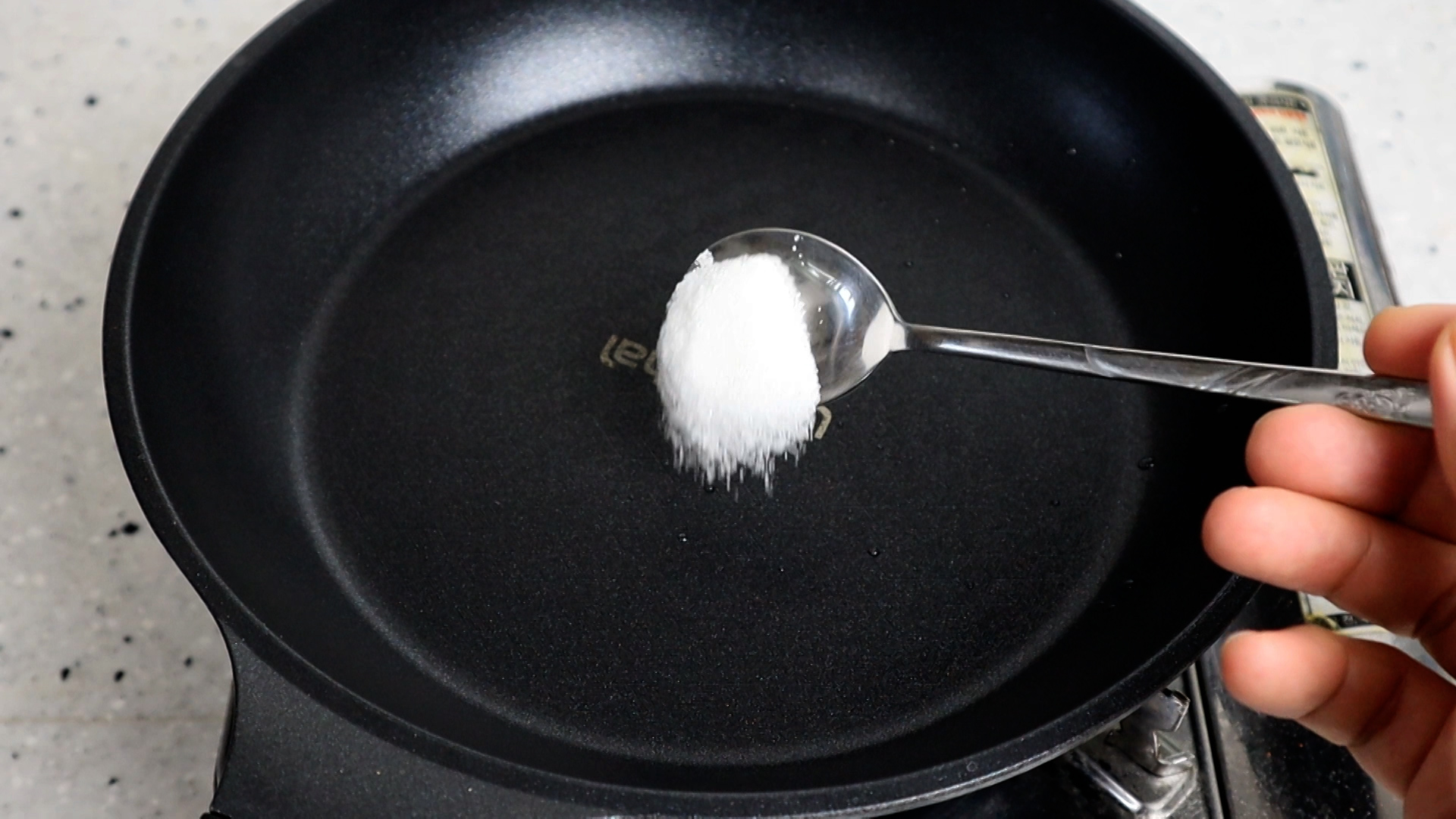 3. 코팅팬에 설탕을 넣어주세요.