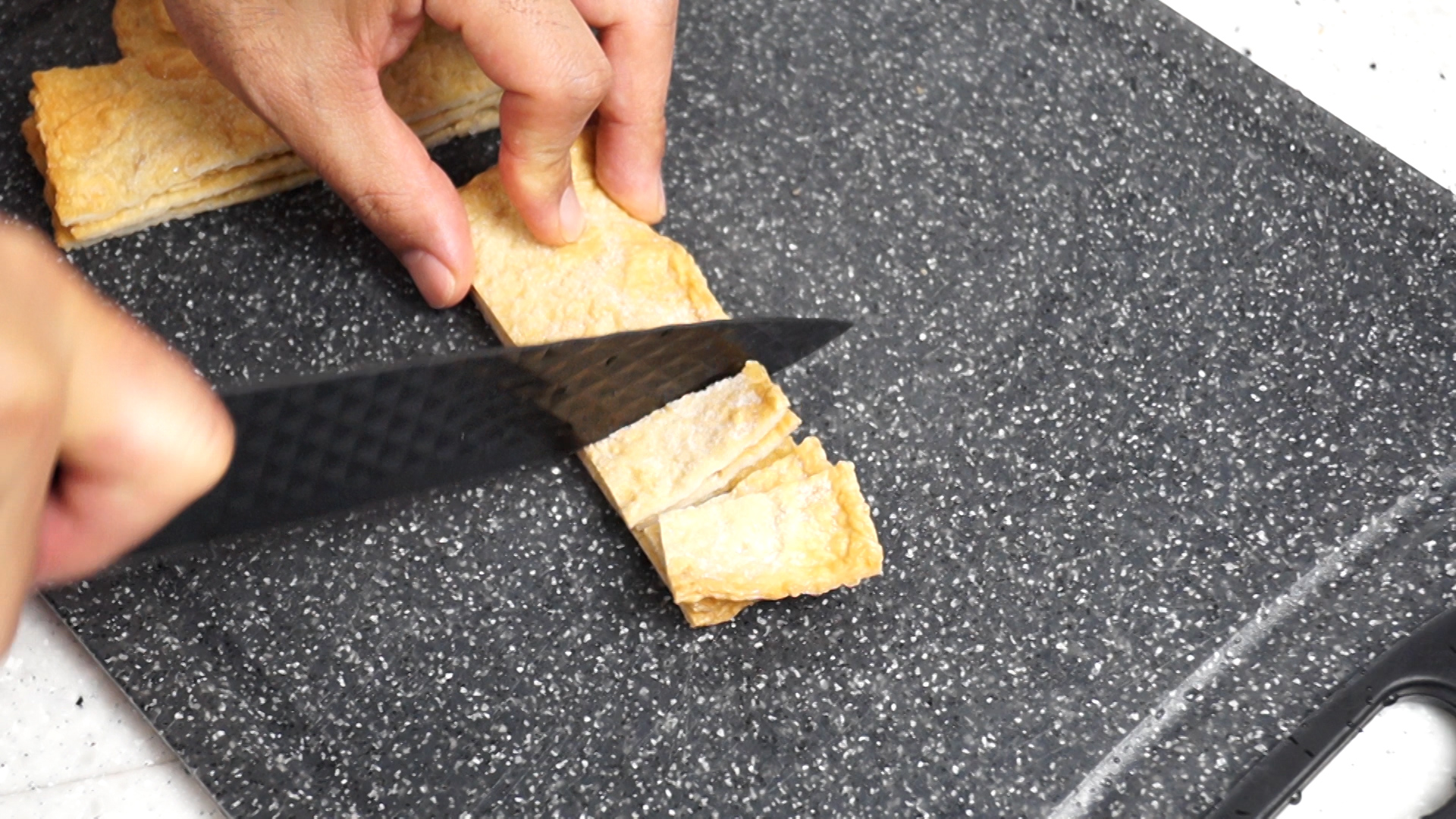 2. 사각어묵을 먹기 좋은 크기로 썰어주세요. 기호에 따라 어묵 말고 돼지고기,소고기,햄,참치 등을 동량 준비해주세요.