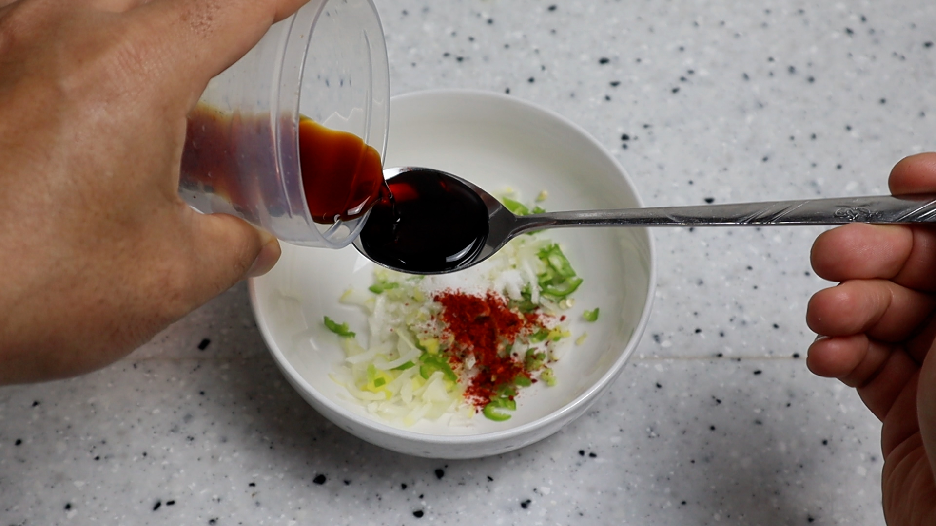 4. 고춧가루 대략 2~3꼬집 분량으로 조금만 넣어주세요.