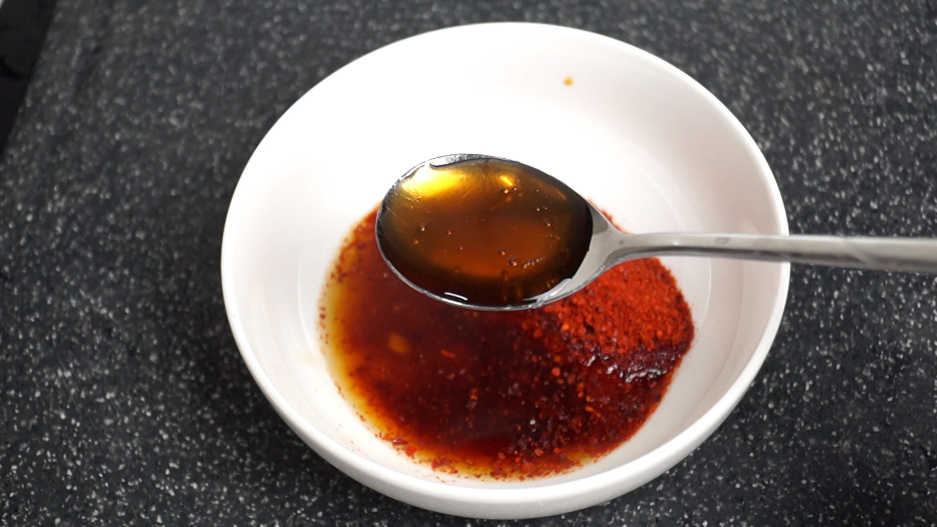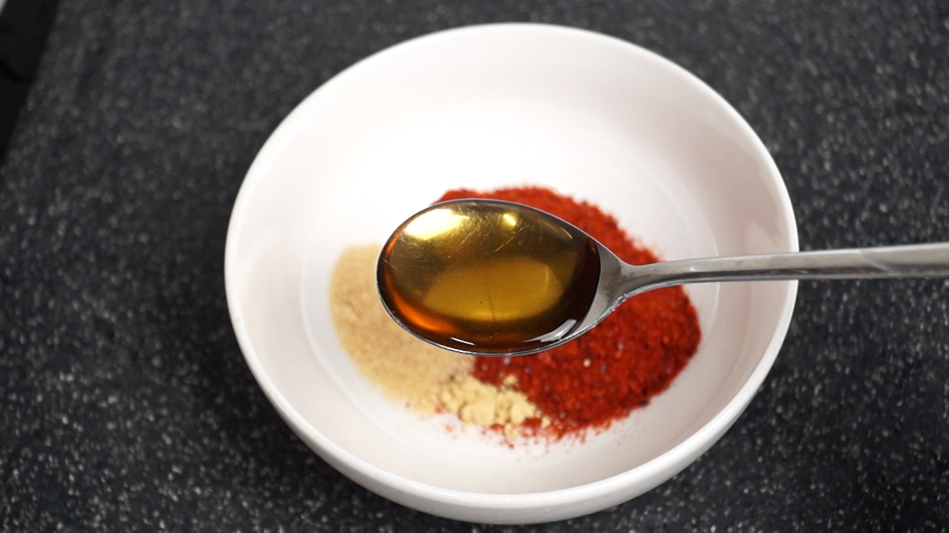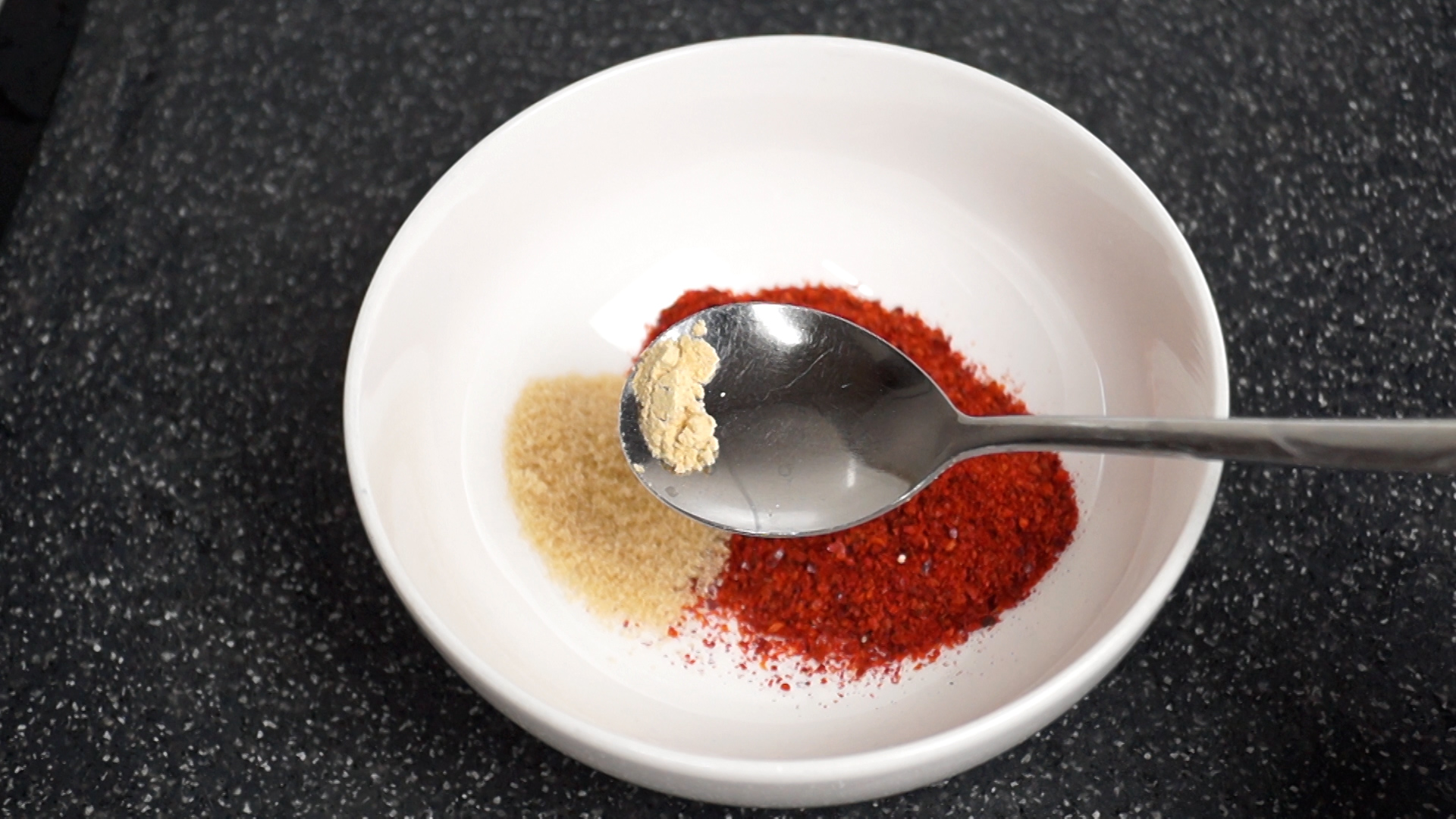 6. 양념란에 적힌 재료를 한데 넣어주세요. 고춧가루는 중간입자 고춧가루입니다.