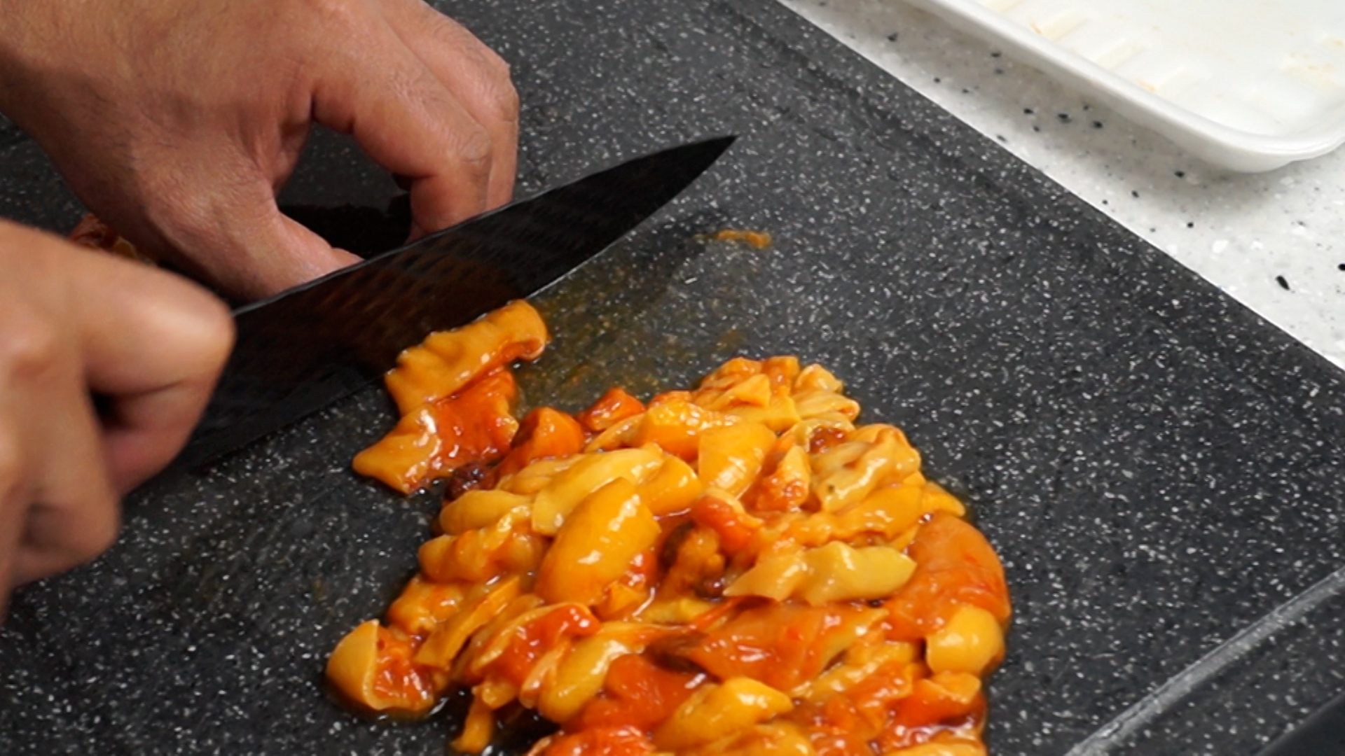 2. 멍게를 나중에 먹기 좋게 대략 2~3cm 정도 크기로 잘라주세요.