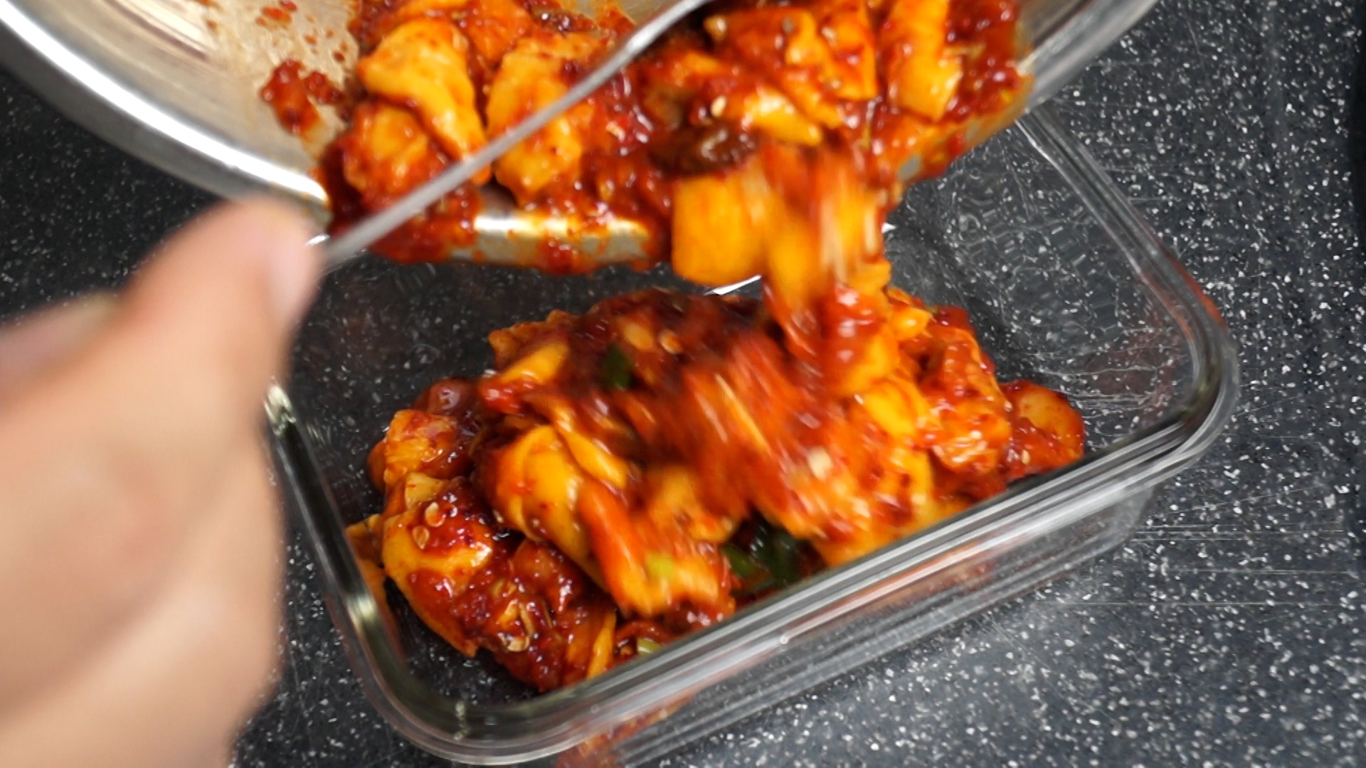 5. 골고루 버무려서 냉장실에 넣고 30분 간 절여주세요.