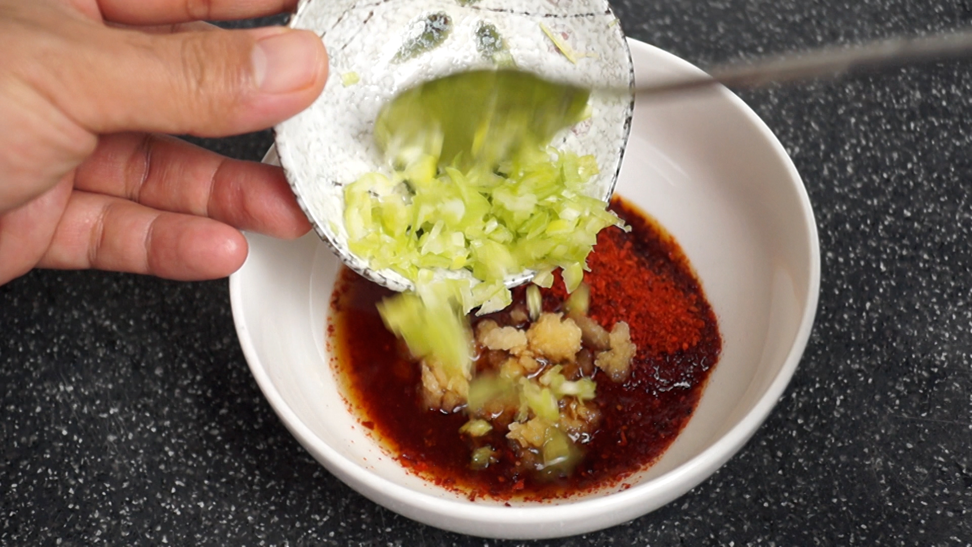 14. 대파는 흰대 초록대 섞어서 잘게 다져 넣어주세요.