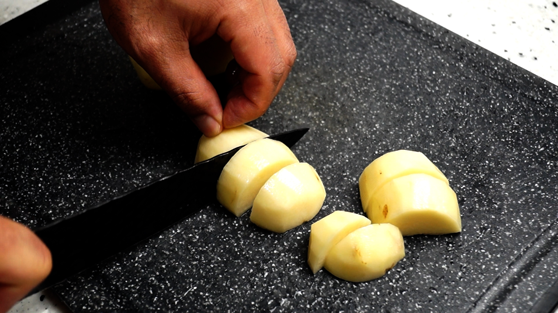 4. 감자는 1.5~2cm 두께로 썰어주세요. 너무 두꺼우면 감자가 안익어 물 추가하면서 더 끓여야 할수 있으니 주의하세요.