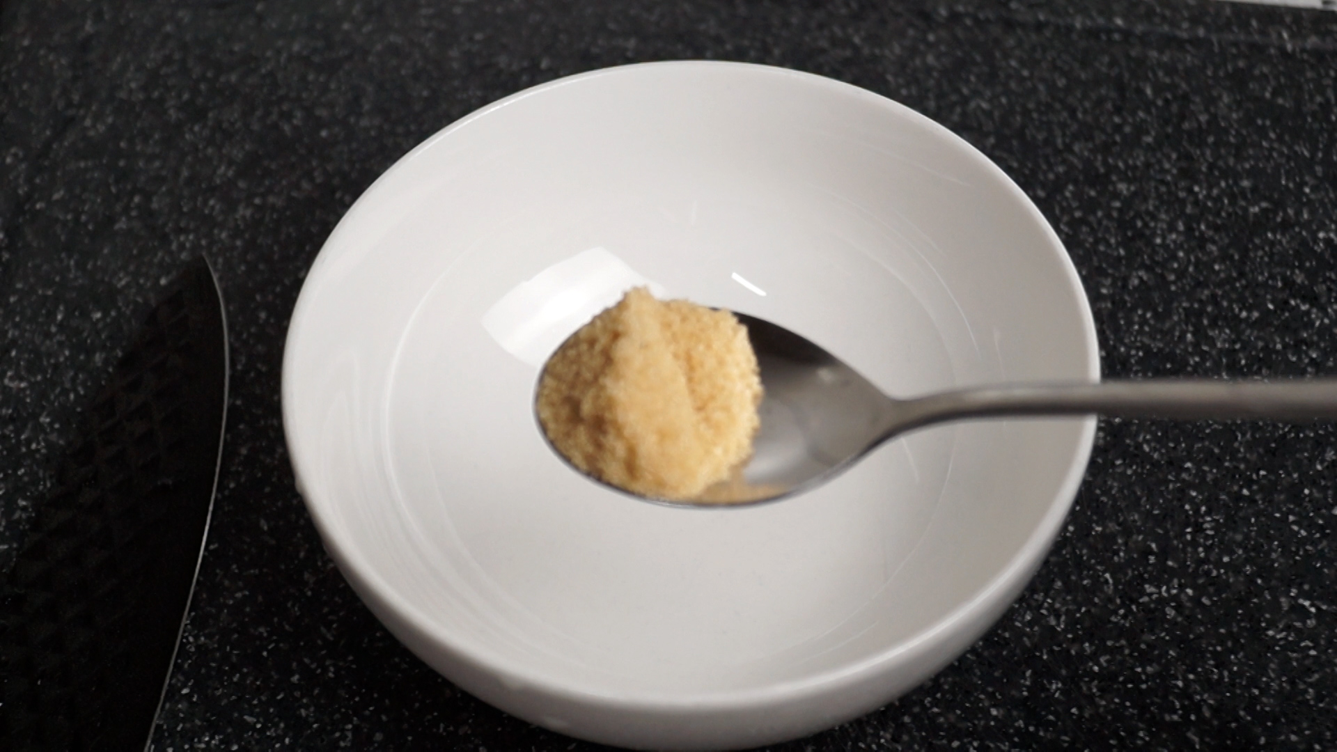 4. 양념란에 적힌 재료를 한데 넣어주세요. 설탕은 깍아서 넣어주세요.