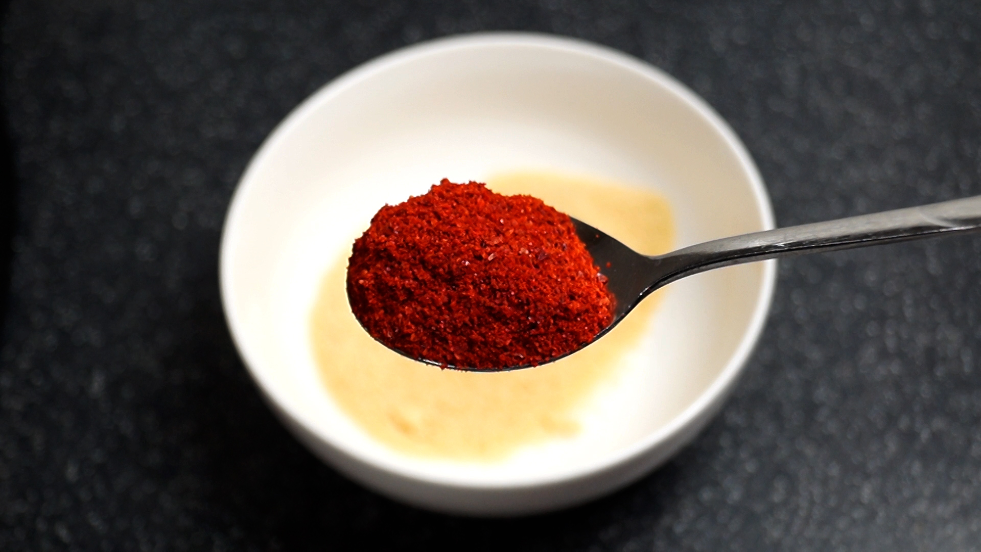 2. 고춧가루를 넣어주세요. 매운 거 좋아하시면 청양고춧가루를 반반 또는 그 외 비율로 섞어서 사용해 보세요.