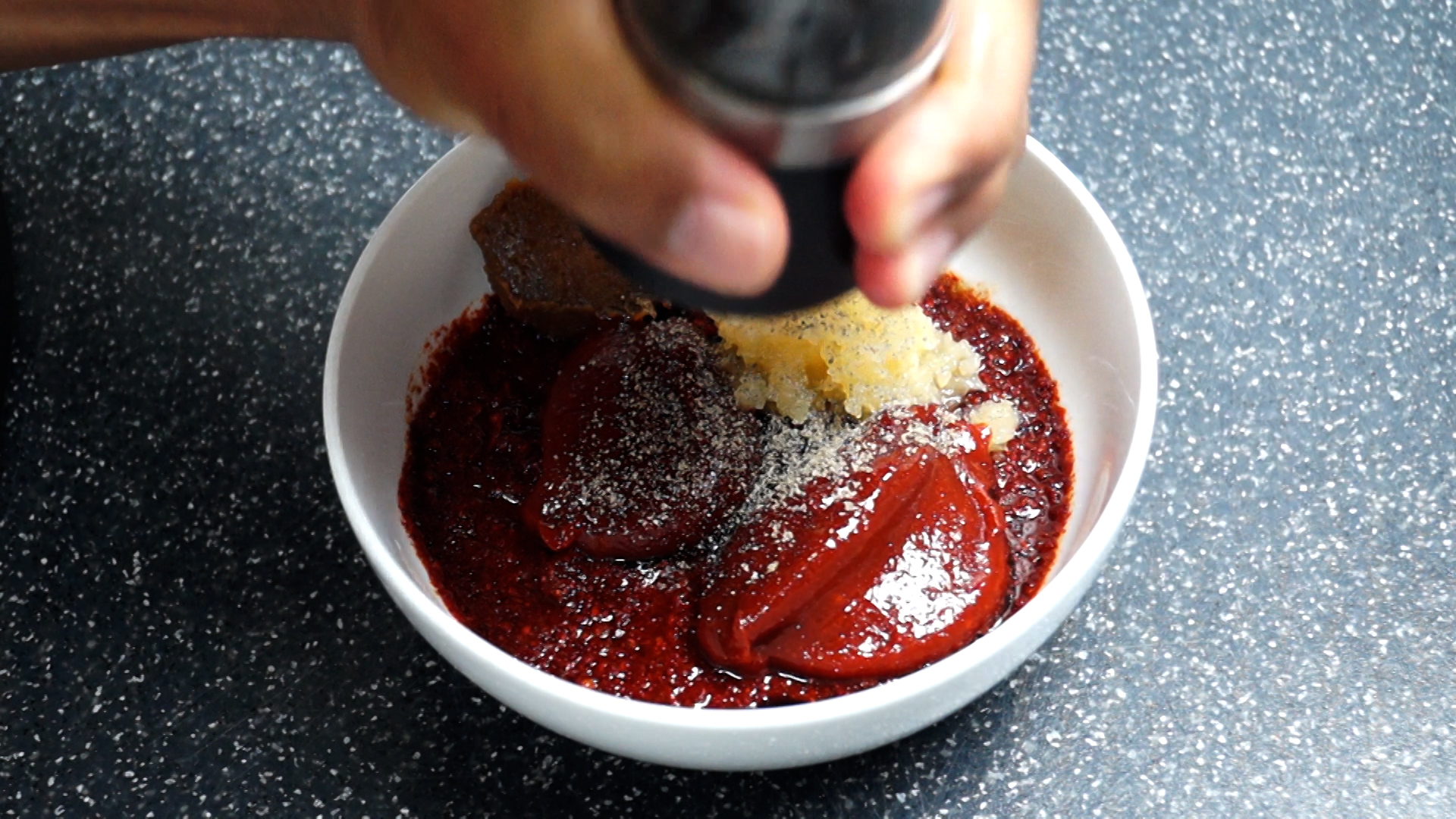 1. 낙지볶음의 핵심! 양념란에 표기한 재료를 한데 넣고 섞어주세요. 설탕은 우선 깎아서 넣고 단맛은 나중에 양념 맛보고 기호에 따라 추가하세요.