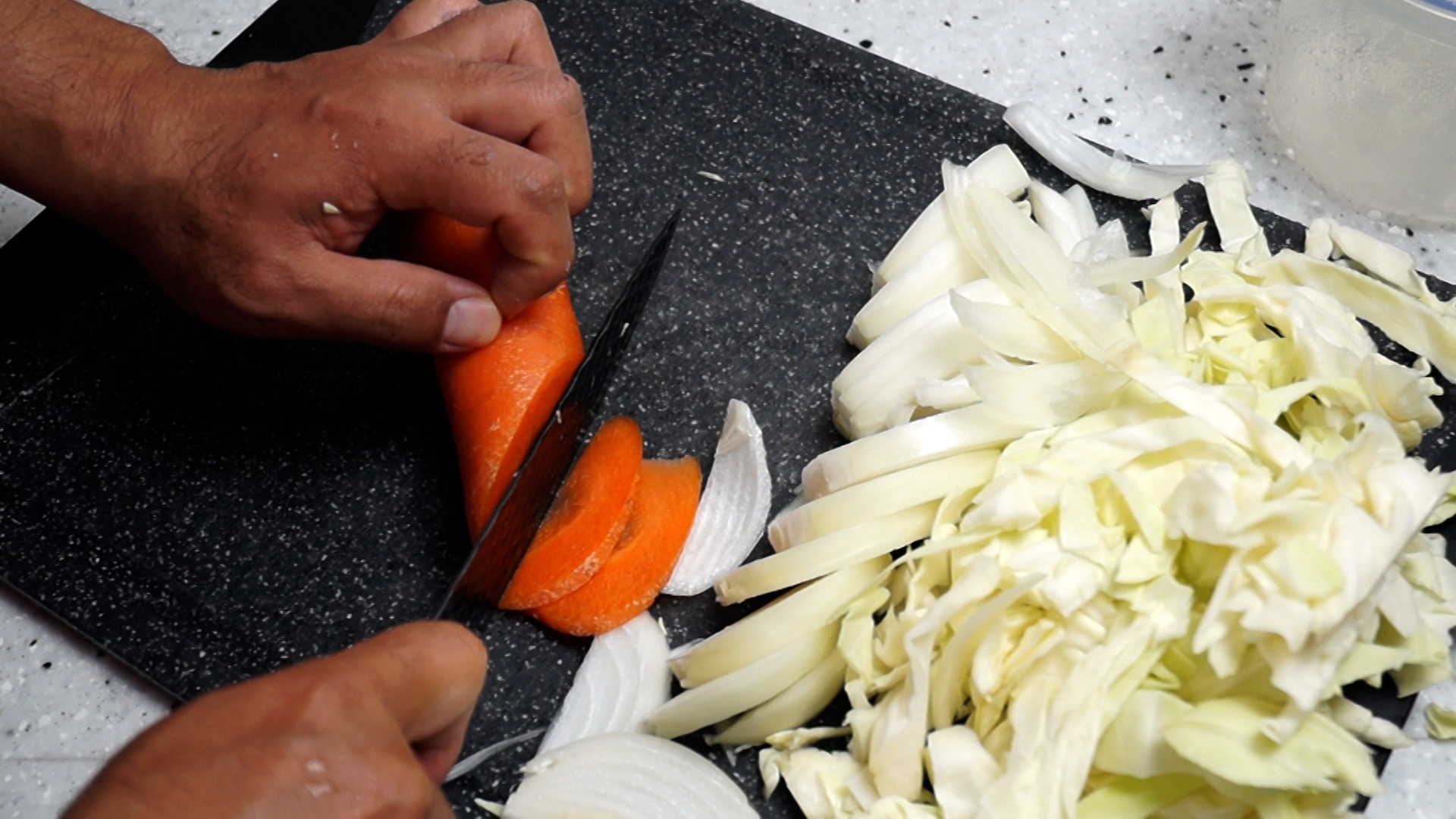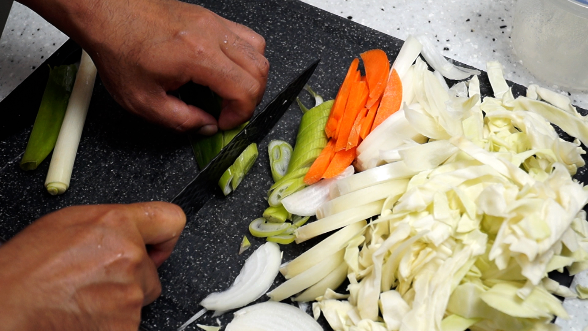 14. 양배추는 1~2cm 두께로 썰어주세요.