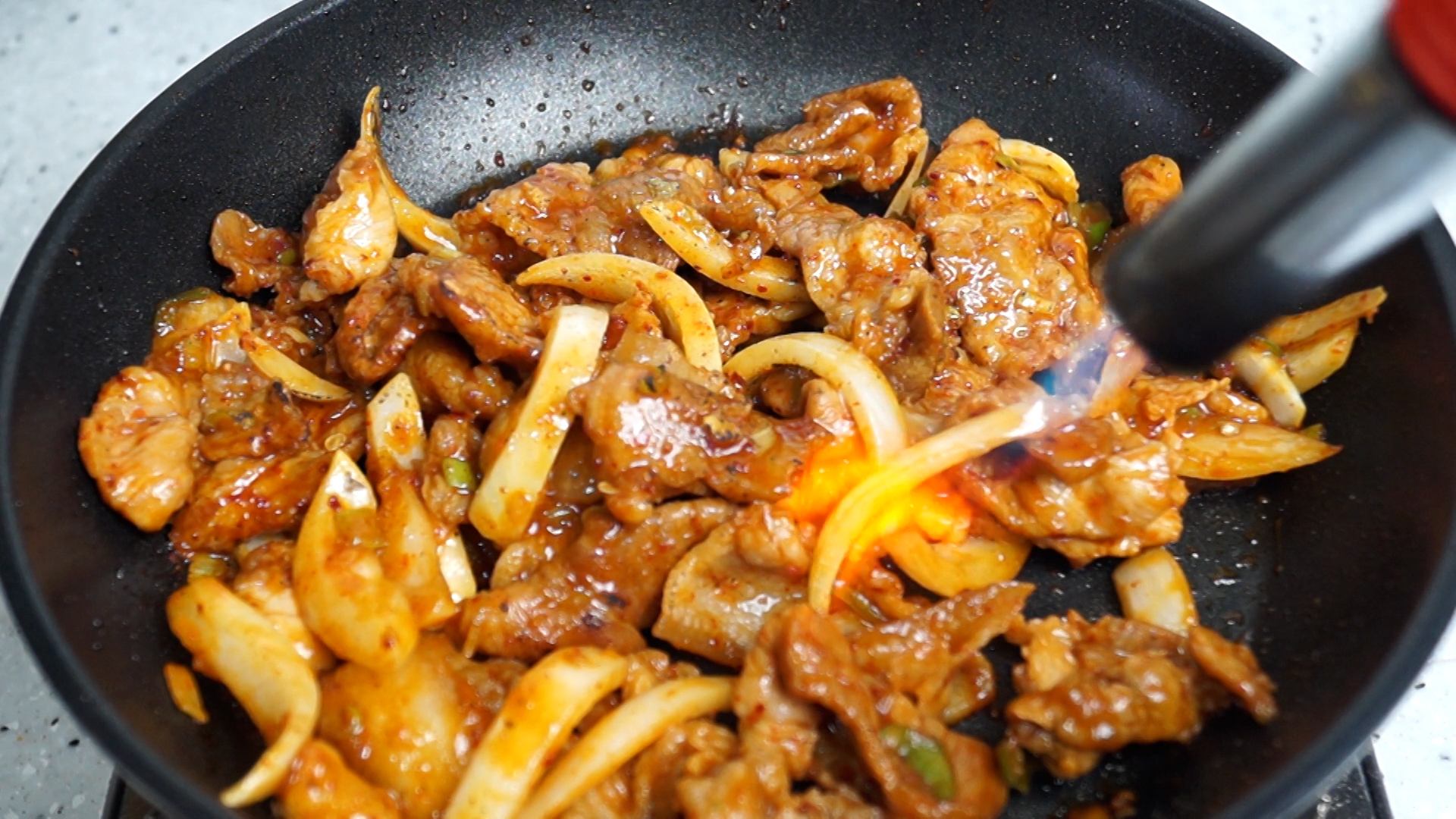 이 제육볶음 레시피는 야채를 좀 줄이고 맛있는 양념과 고기에 집중한 연탄불고기 돼지불백 스타일 이에요~