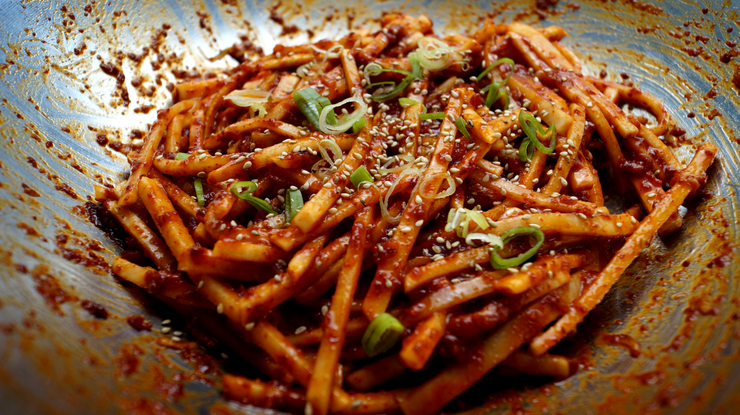 8. 양념이 골고루 베이게 설설설 무쳐주세요.