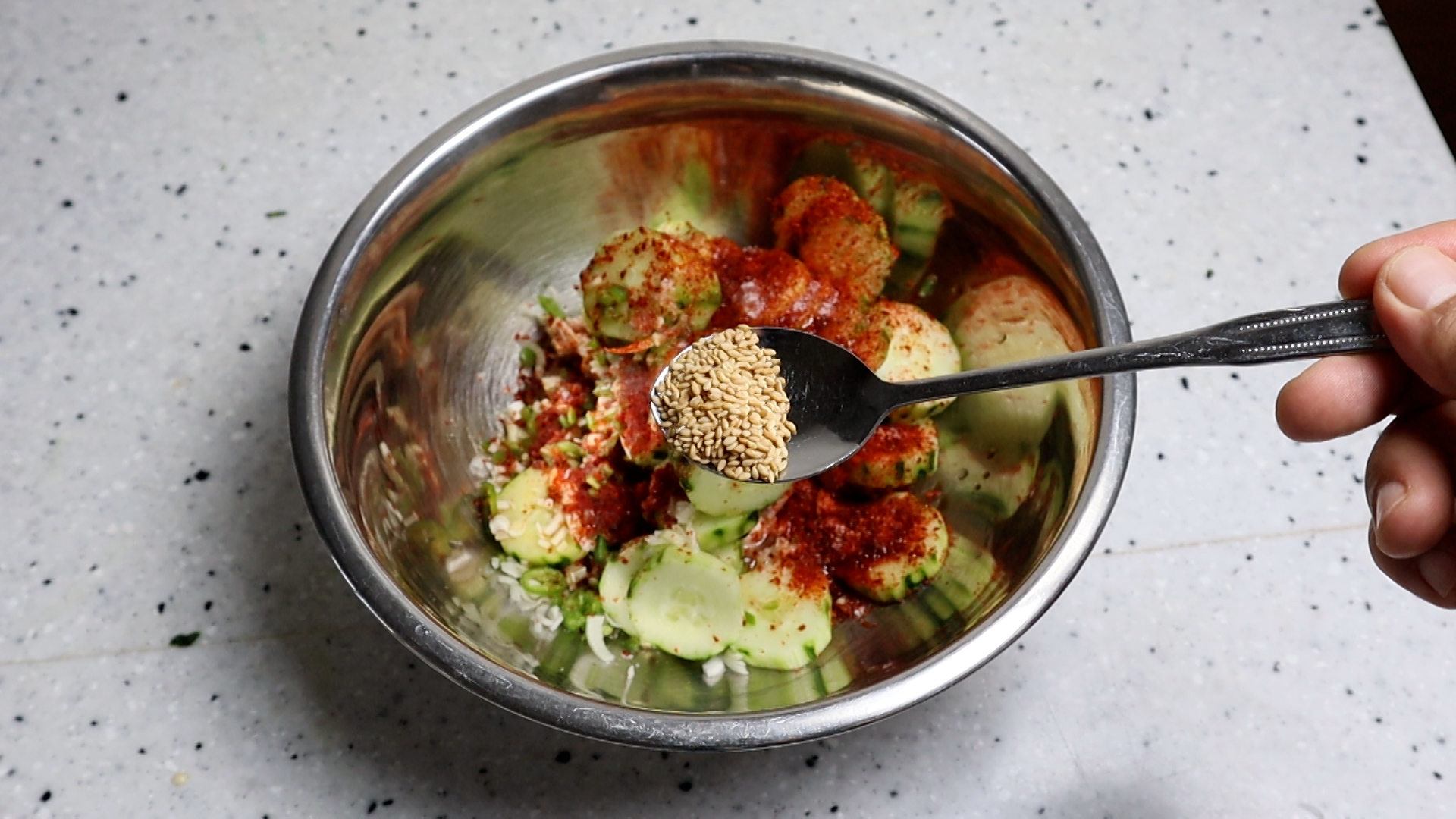 13. 고소하게 씹는맛 보탤 통깨를 넣어주세요.