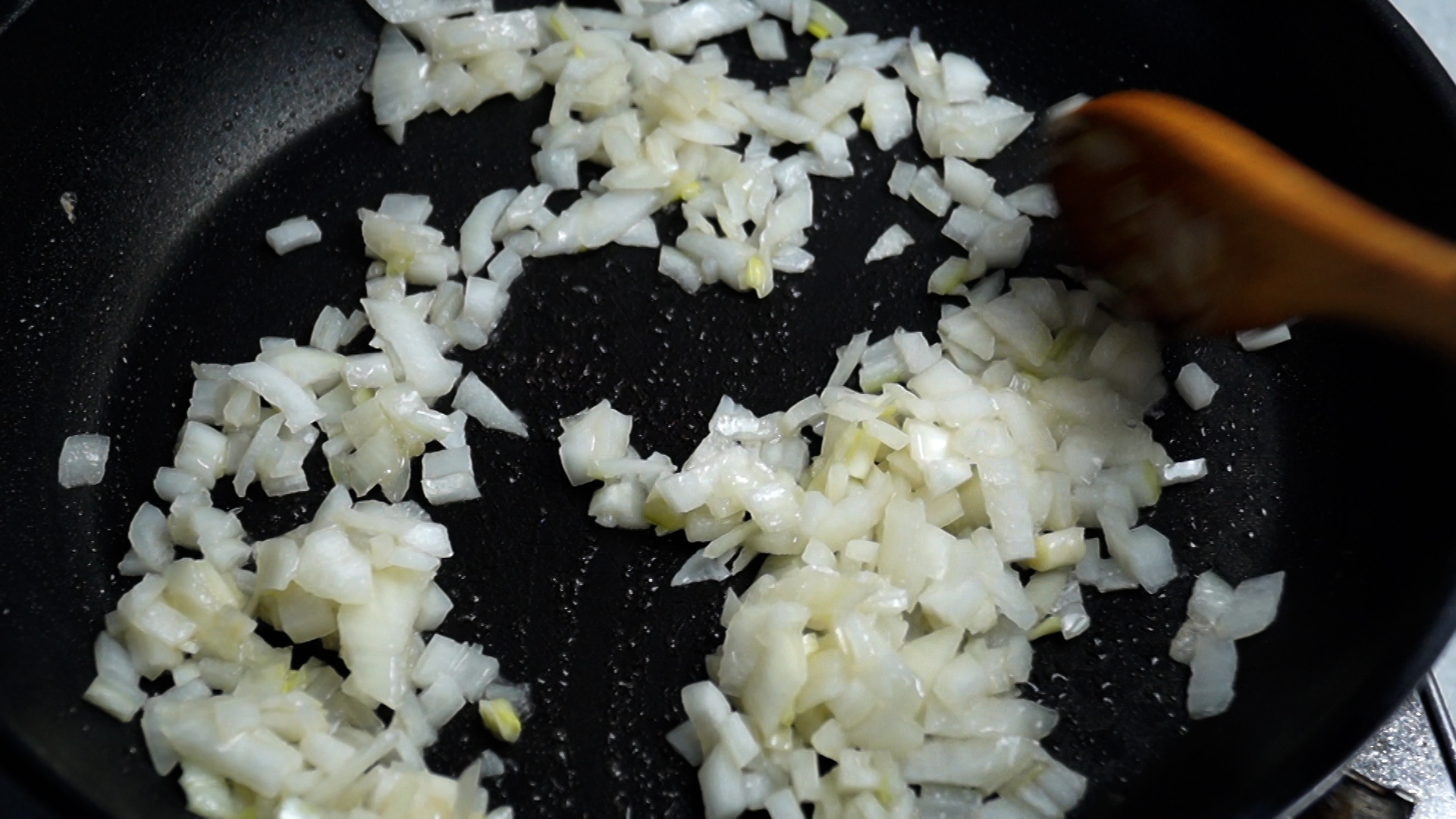4. 양파를 넣고 대략 1분간 양파가 투명해지게 볶아주세요.