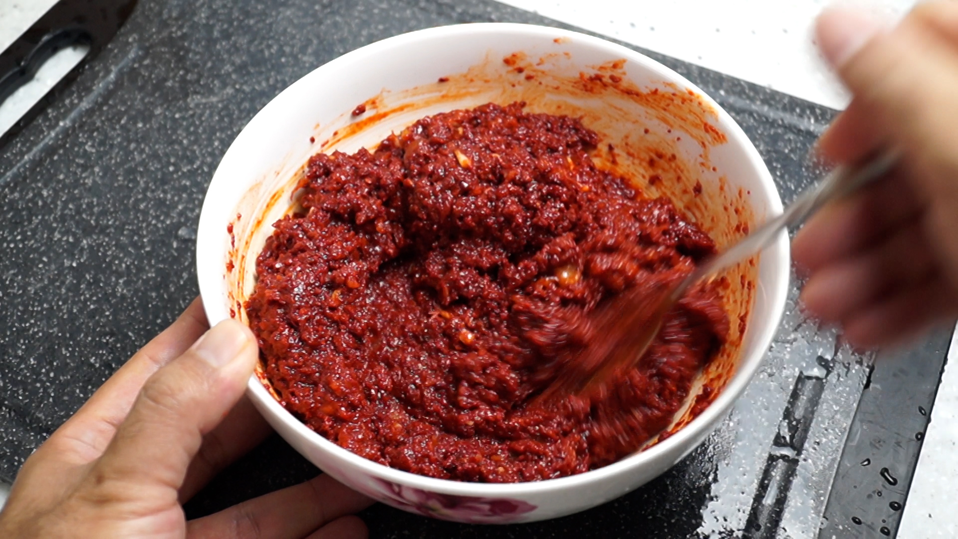 7. 멸치액젓은 고춧가루의 절반 1컵을 부어주세요. 까나리액젓을 사용하셔도 좋아요~