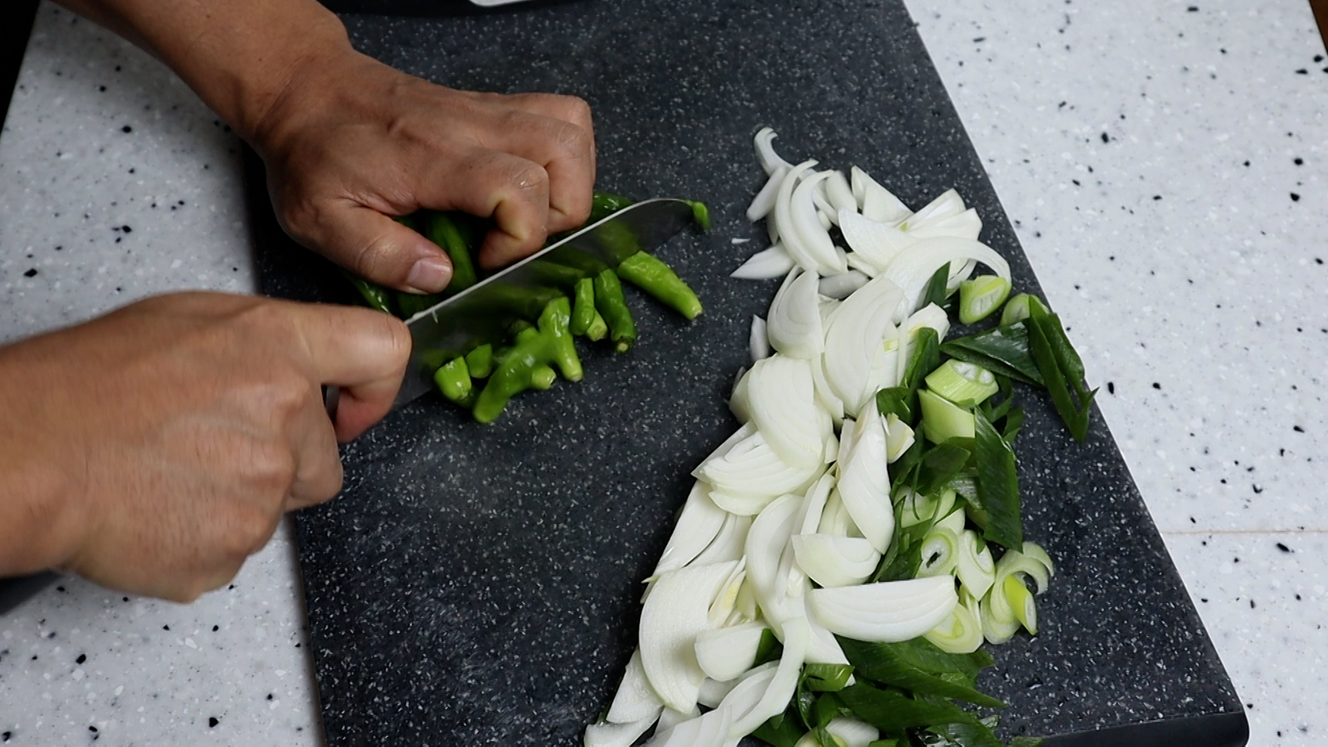 13. 꽈리고추는 깨끗히 세척해서 3~4등분으로 잘라주세요.