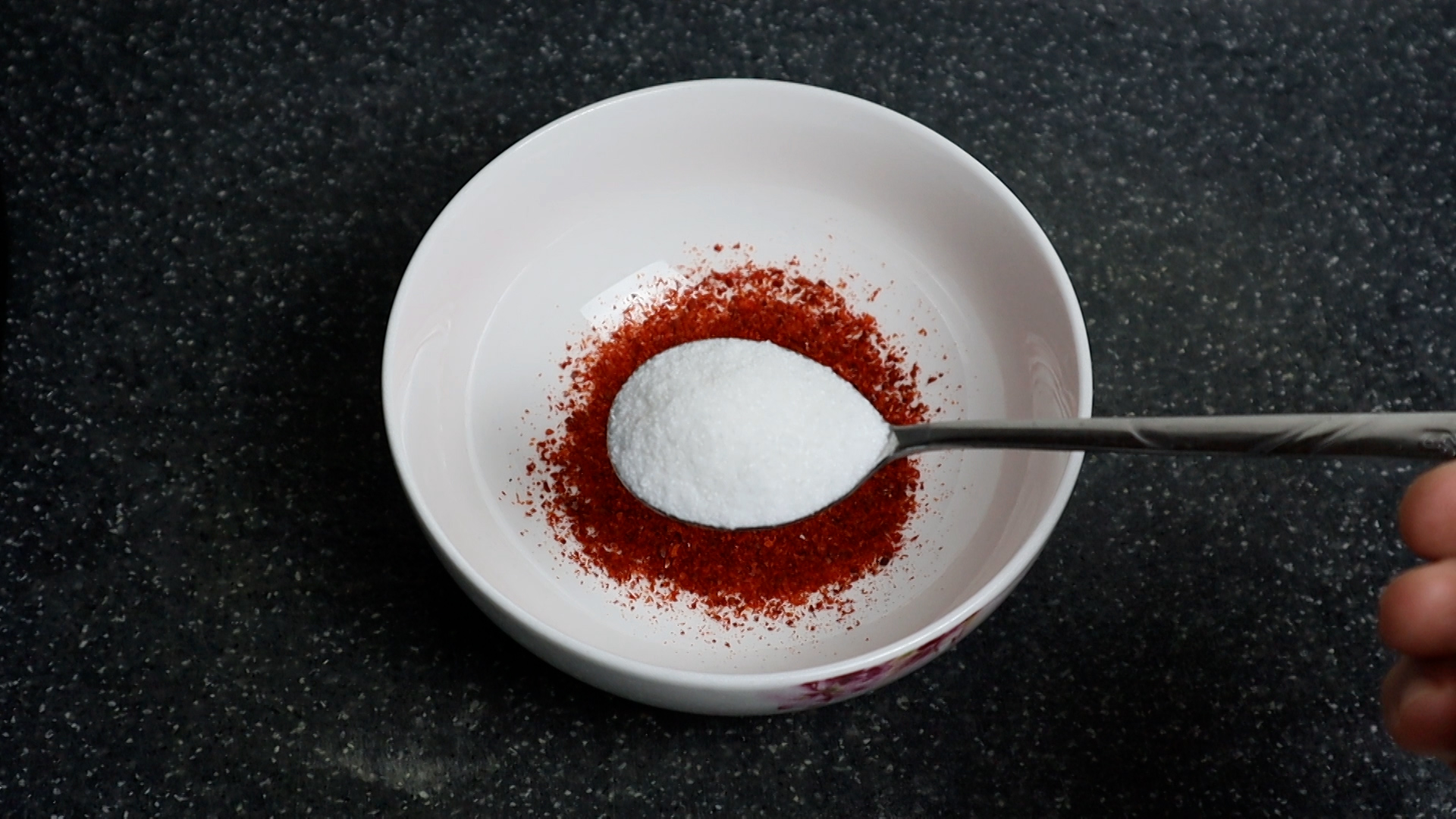 1. 양념란에 재료를 전부 한데 섞을거에요. 고춧가루는 중간 입자 고춧가루 사용해주세요.