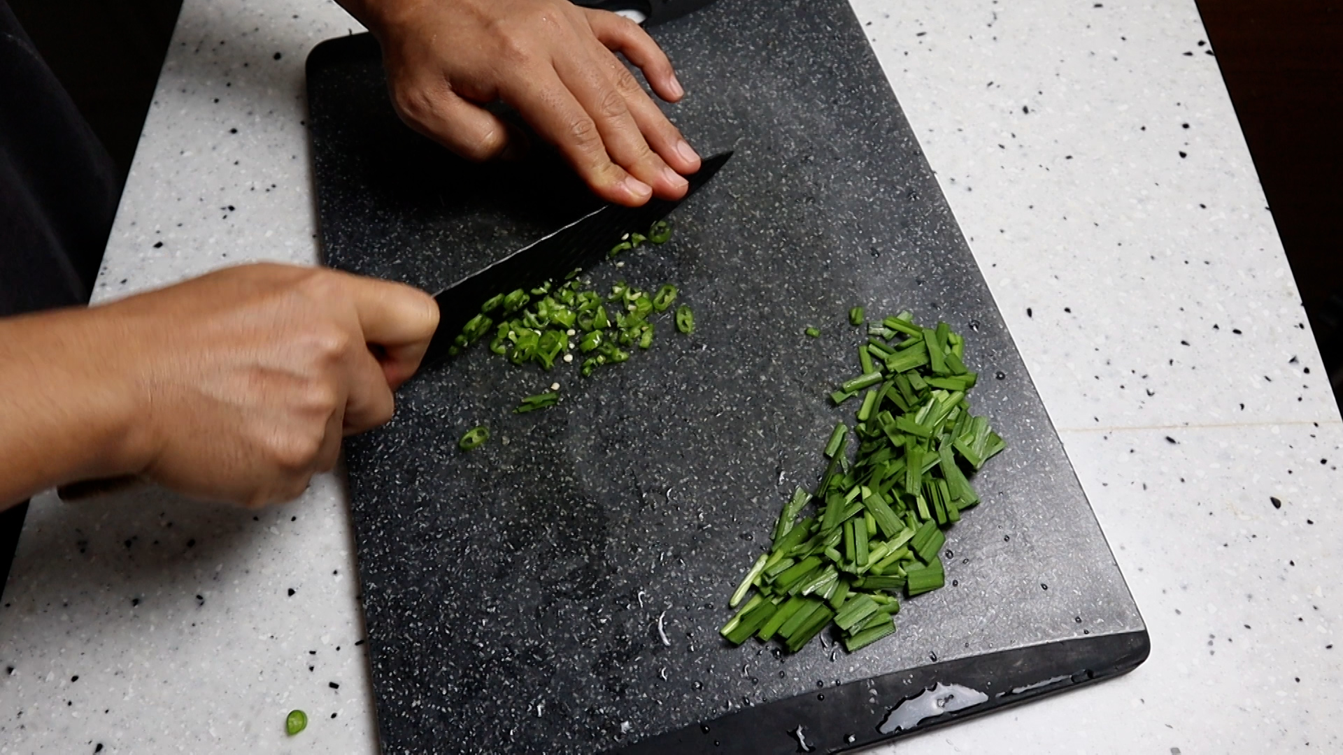 3. 땡초 1개를 잘게잘게 다져주는데 매운게 싫은분들은 풋고추를 1개 썰어주세요.