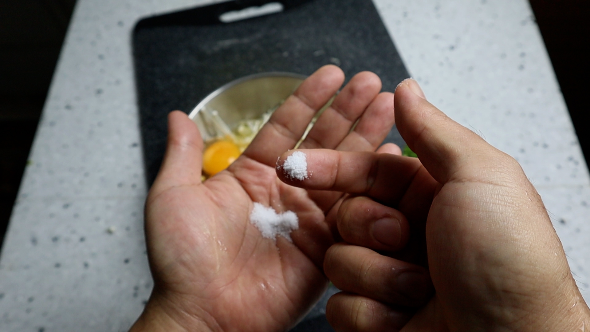 6. 맛소금 1/10스푼 1g 또는 손가락으로 집어서 5꼬집 넣어주세요.