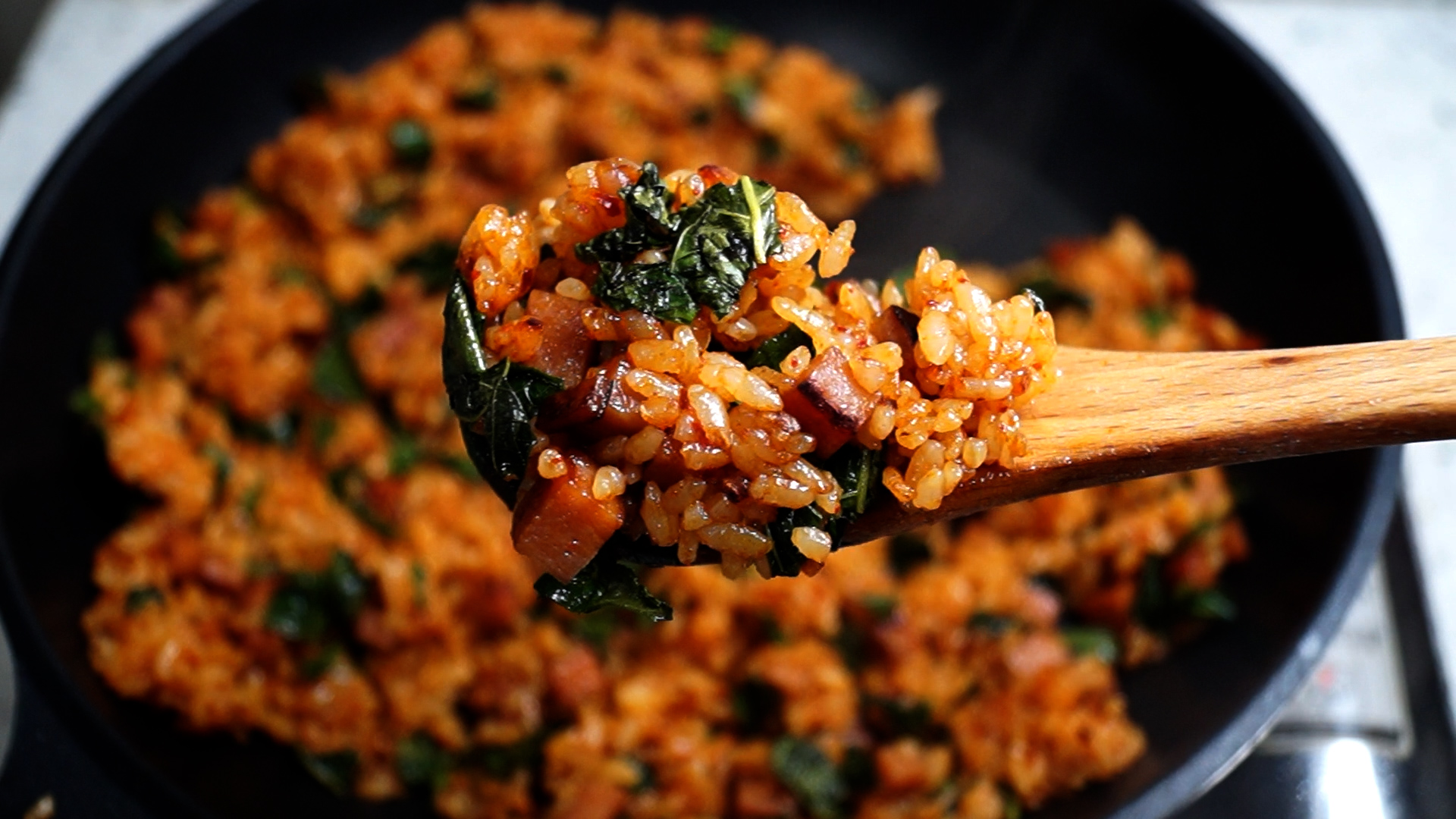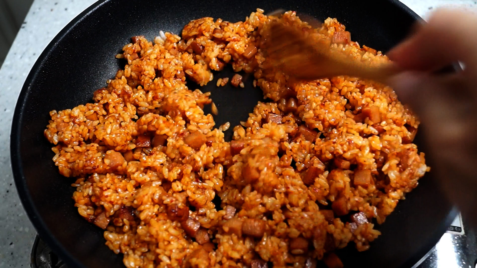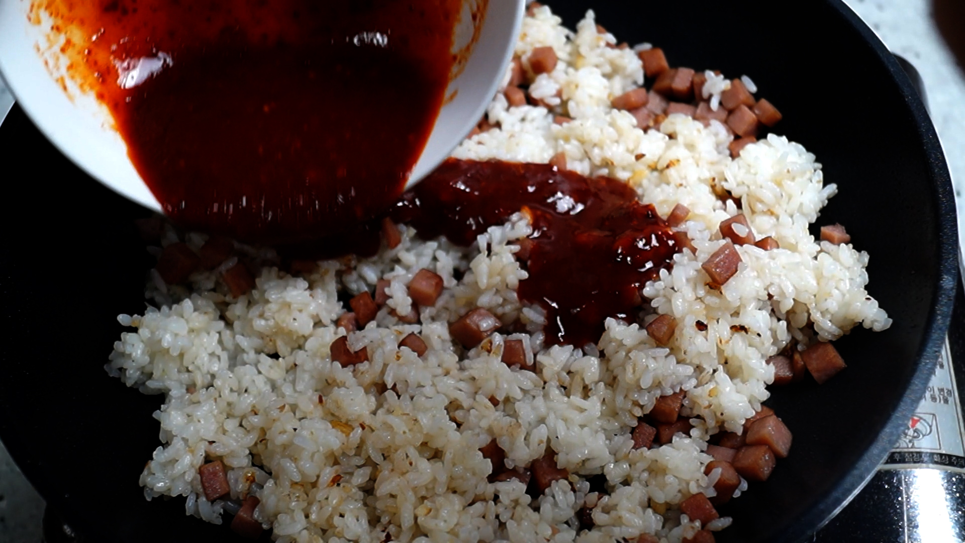13. 색감을 보시고 볶음밥 색이 진하지 않고 연하다면 양념을 1~2스푼 더 넣어주세요.