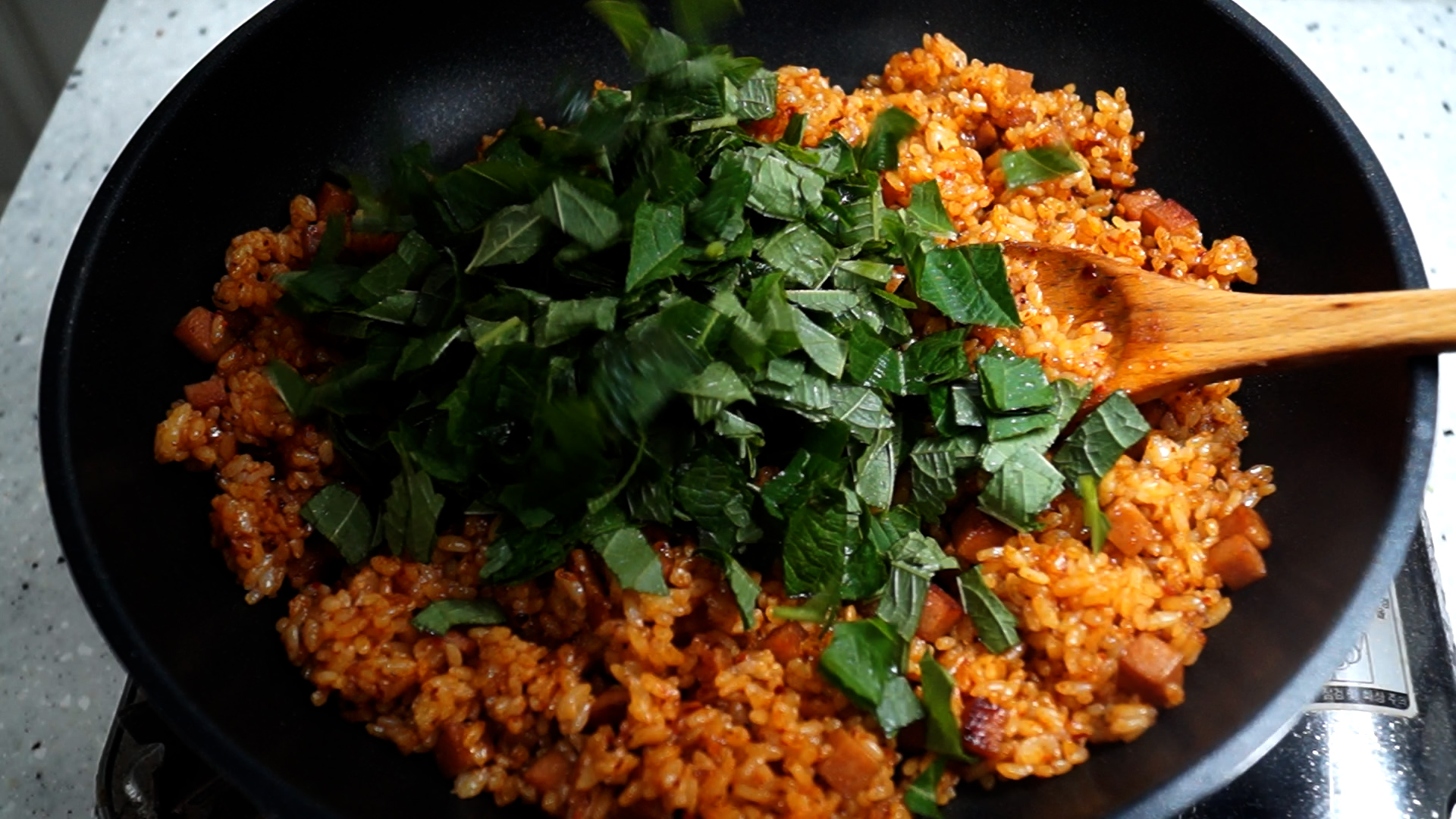 따끈따근 볶음밥에 깻잎향이 입혀져
