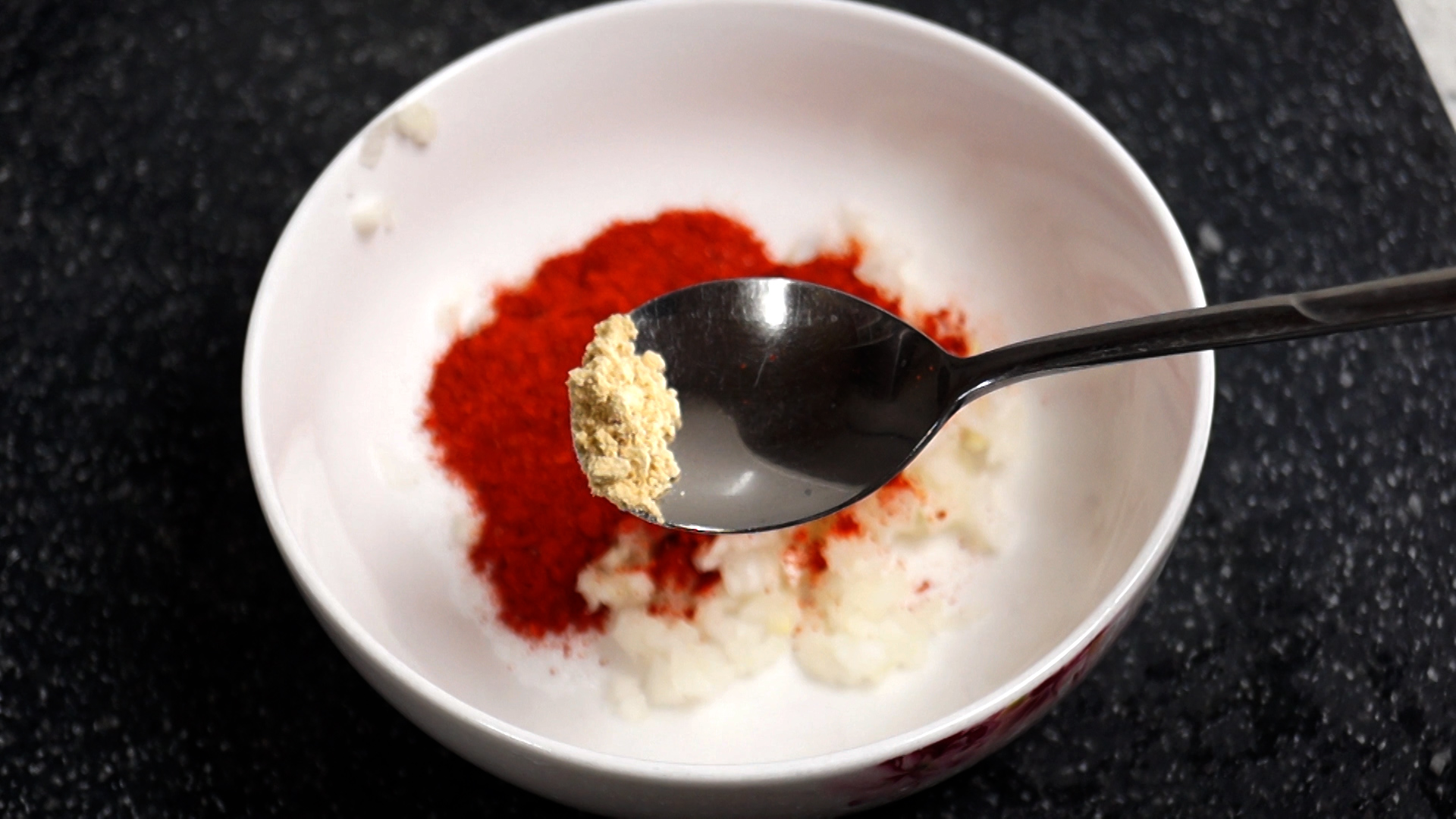 4. 돼지고기와 정말 잘 어울리는 생강가루를 넣어주세요. 생강가루가 없을땐 간생간을 조금 넣어보세요.