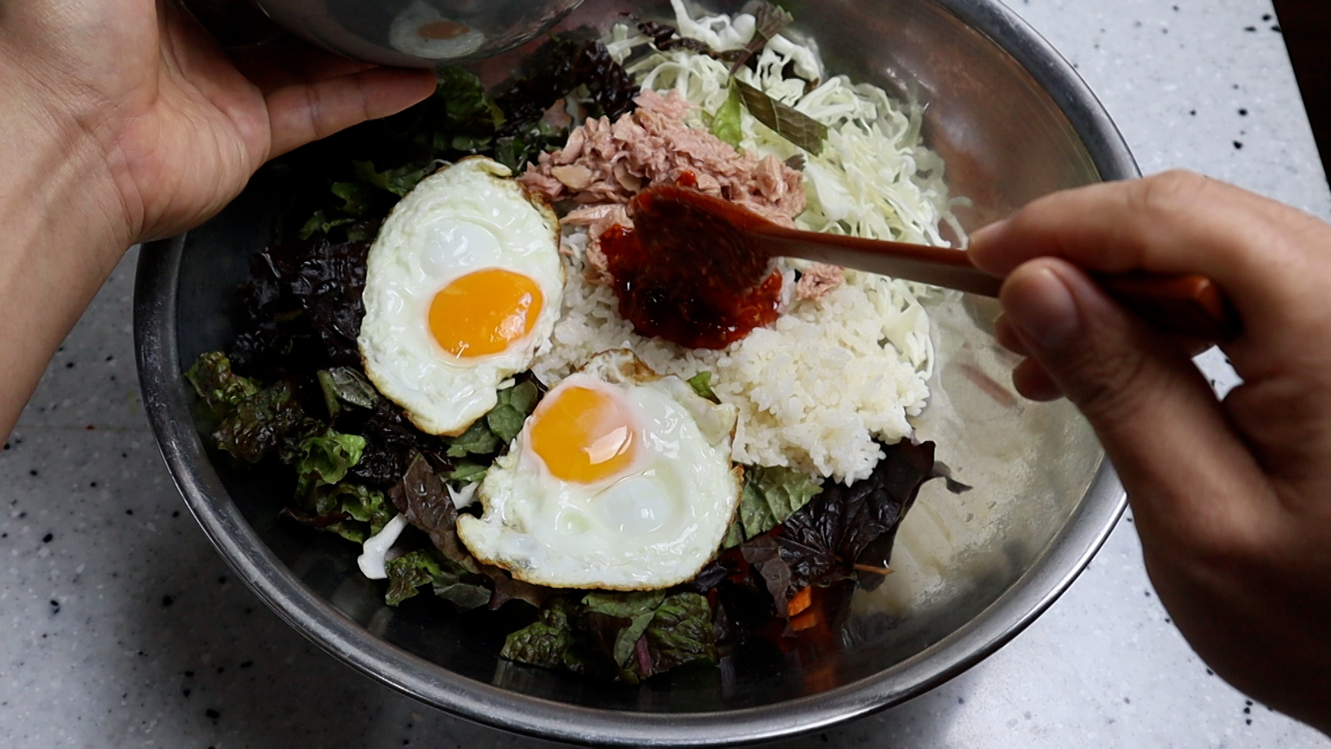 28. 양념이 진짜 맛있는 참치 비빔밥!! 맛있게 한다라이 비벼보세요~ 정말 맛있습니다!