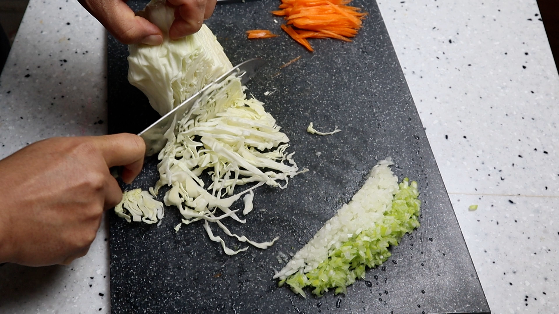 4. 양배추도 얇게 썰어 준비해주세요.