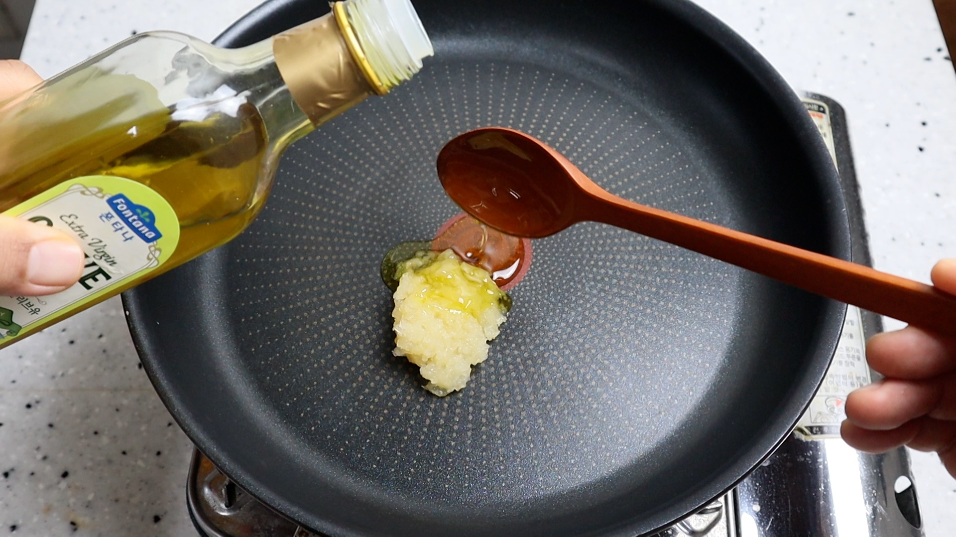 6. 올리브유를 넣어주세요. 올리브유는 기호에 따라 2~3스푼 더 넣으셔도 좋습니다.