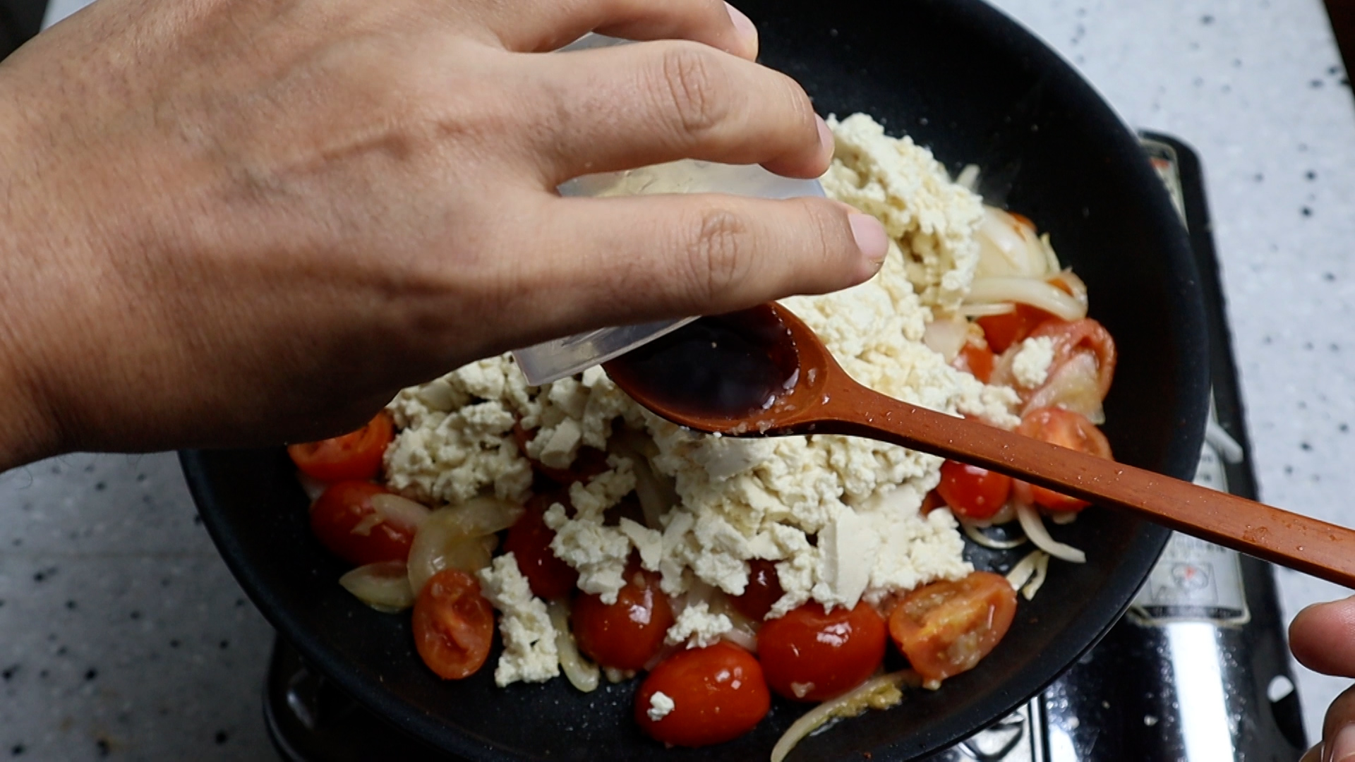9. 토마토를 넣고 강불에 1분간 볶아주세요.