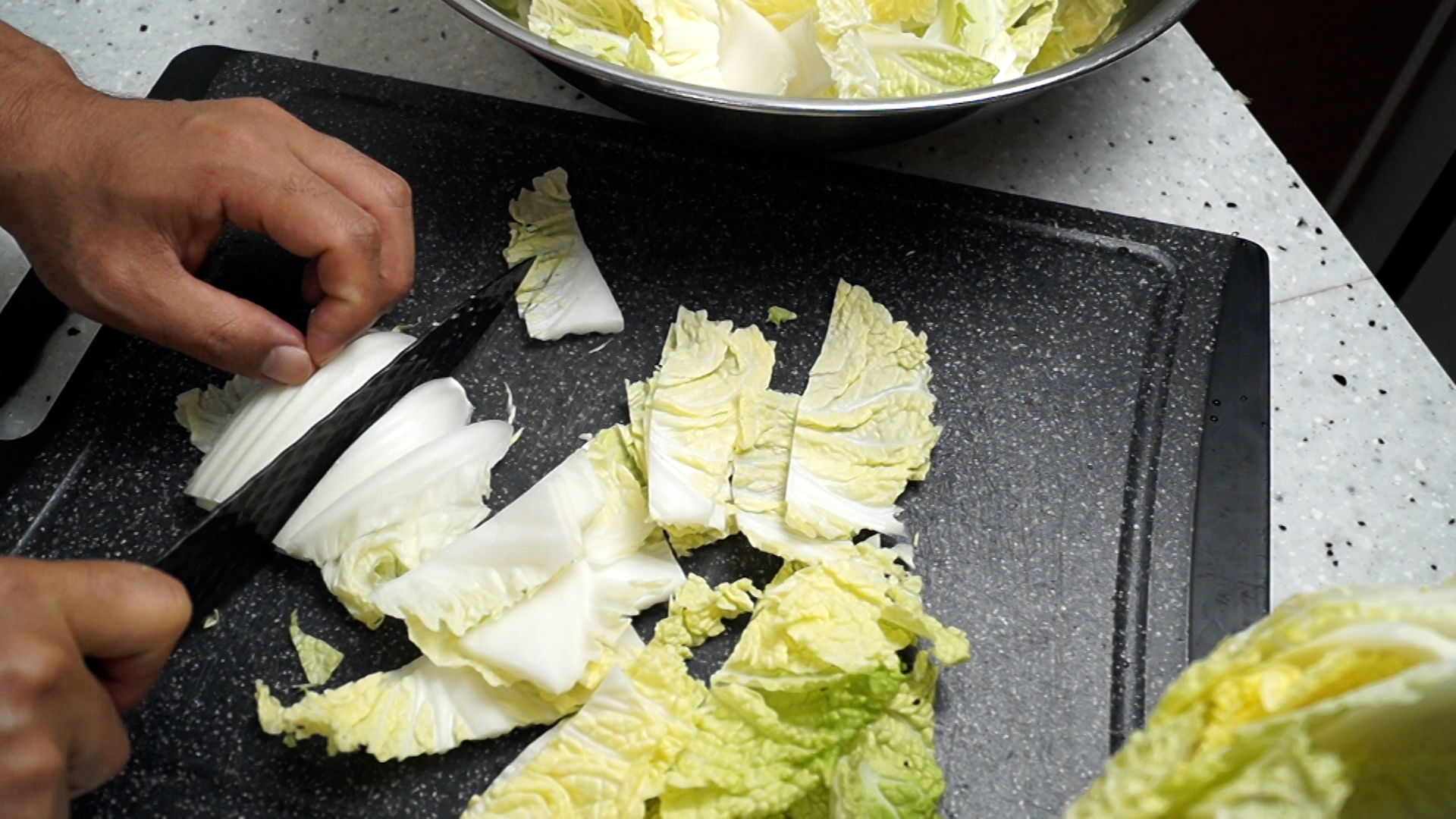 2. 배추는 먹기 좋은 한입 크기로 잘라주세요.