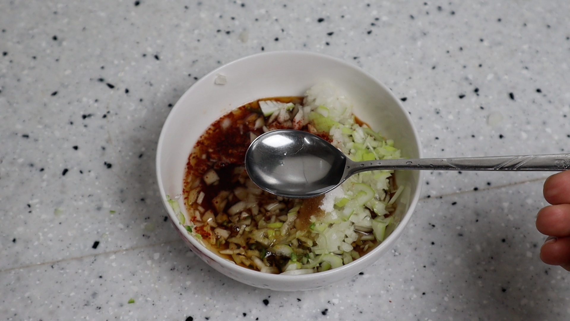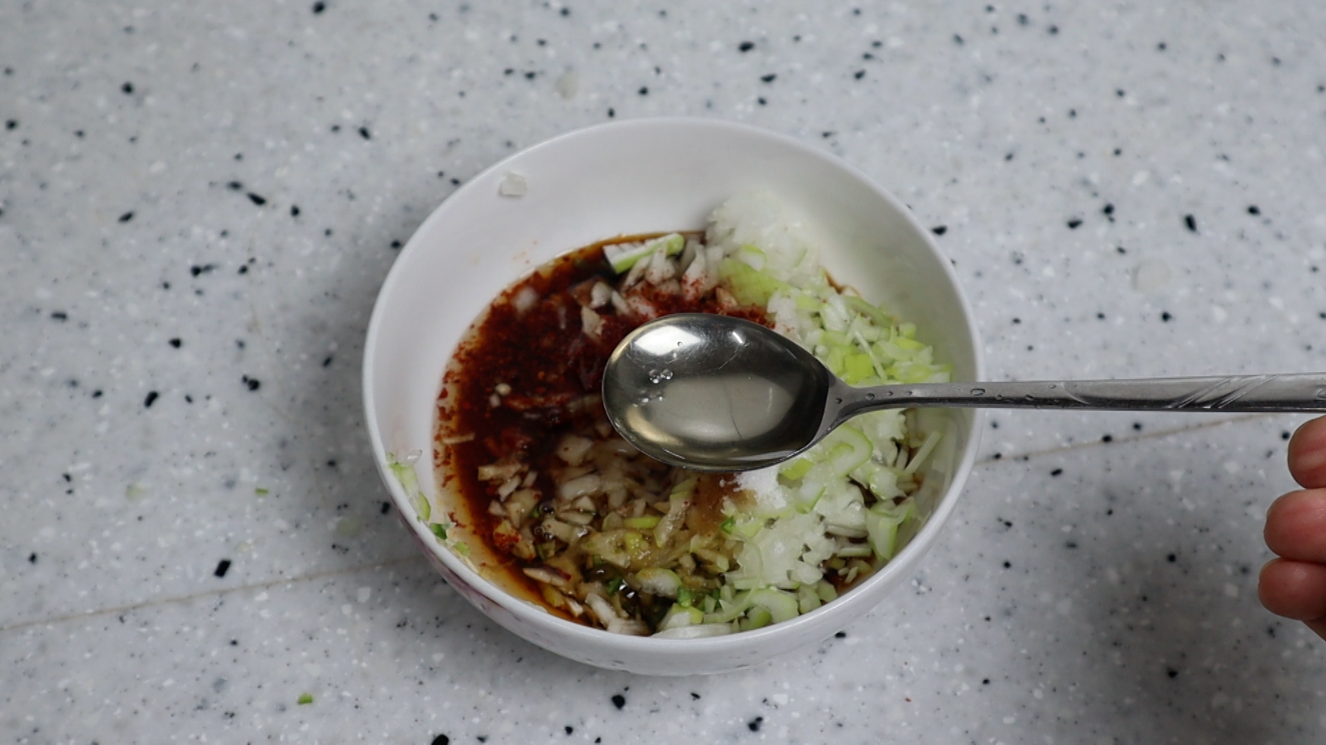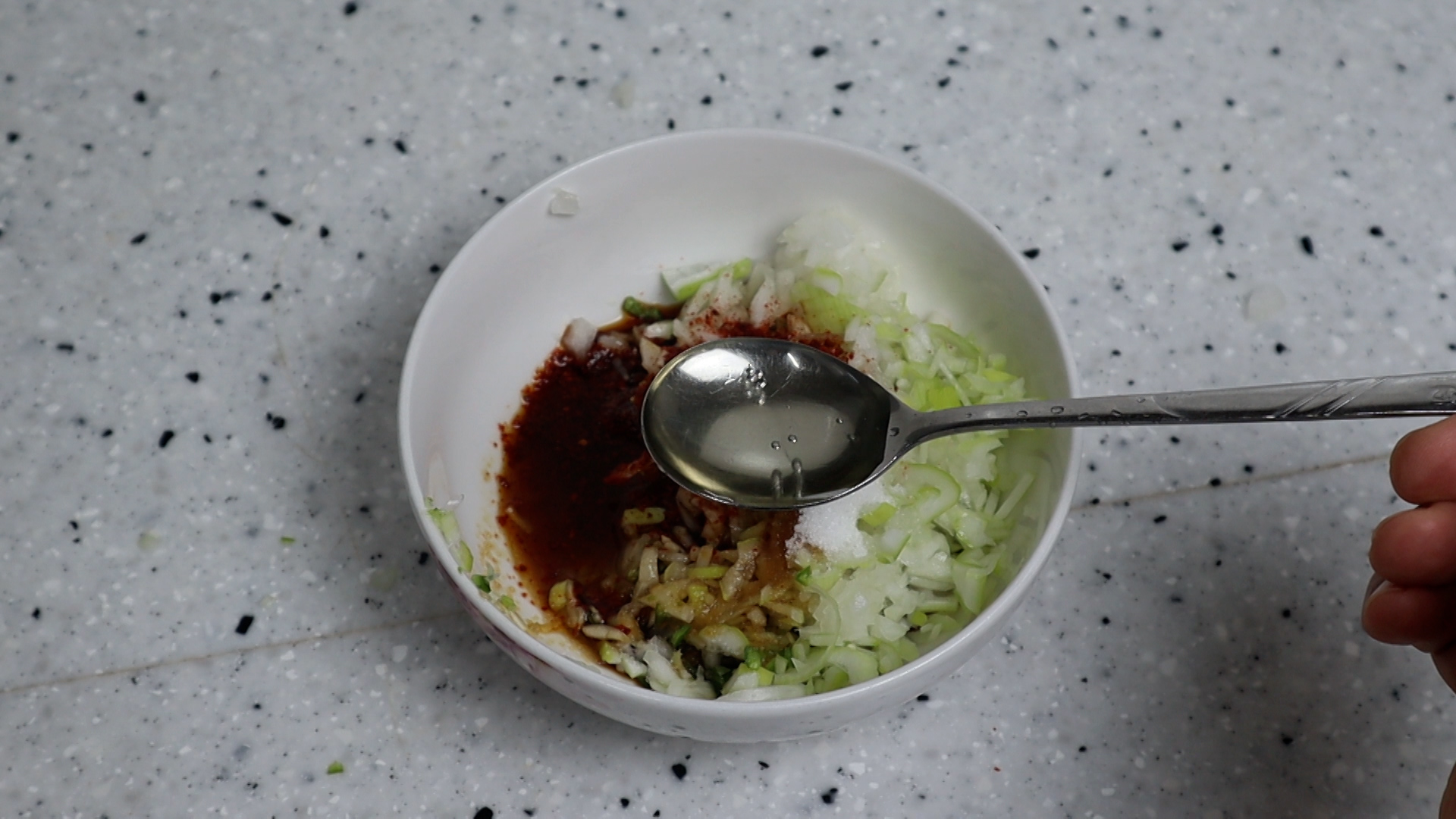 1. 양파는 대략 2~3큰술 분량이 나오게 잘게잘게 다져주세요.