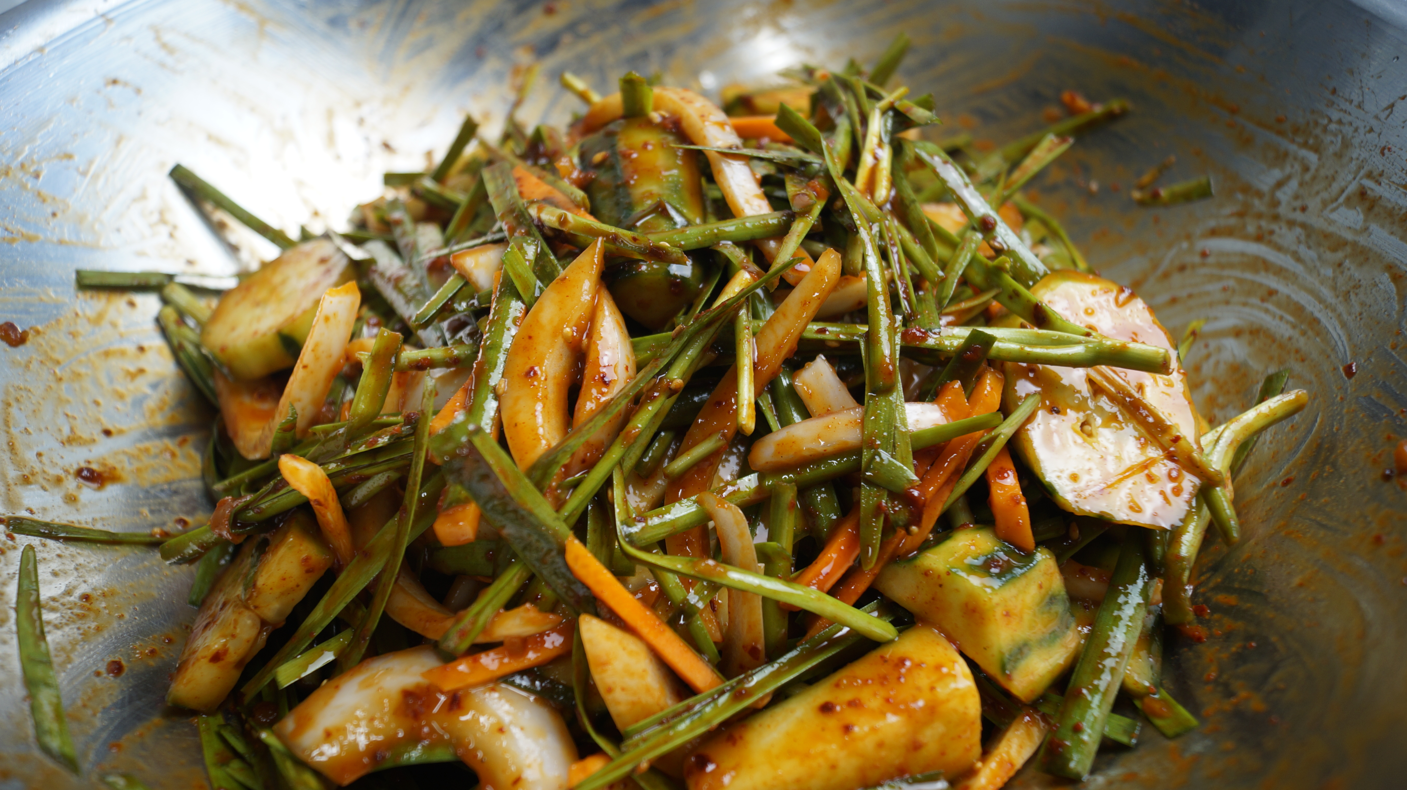 오이만 무쳐도 맛있고 부추랑 조합하면 더 맛있는