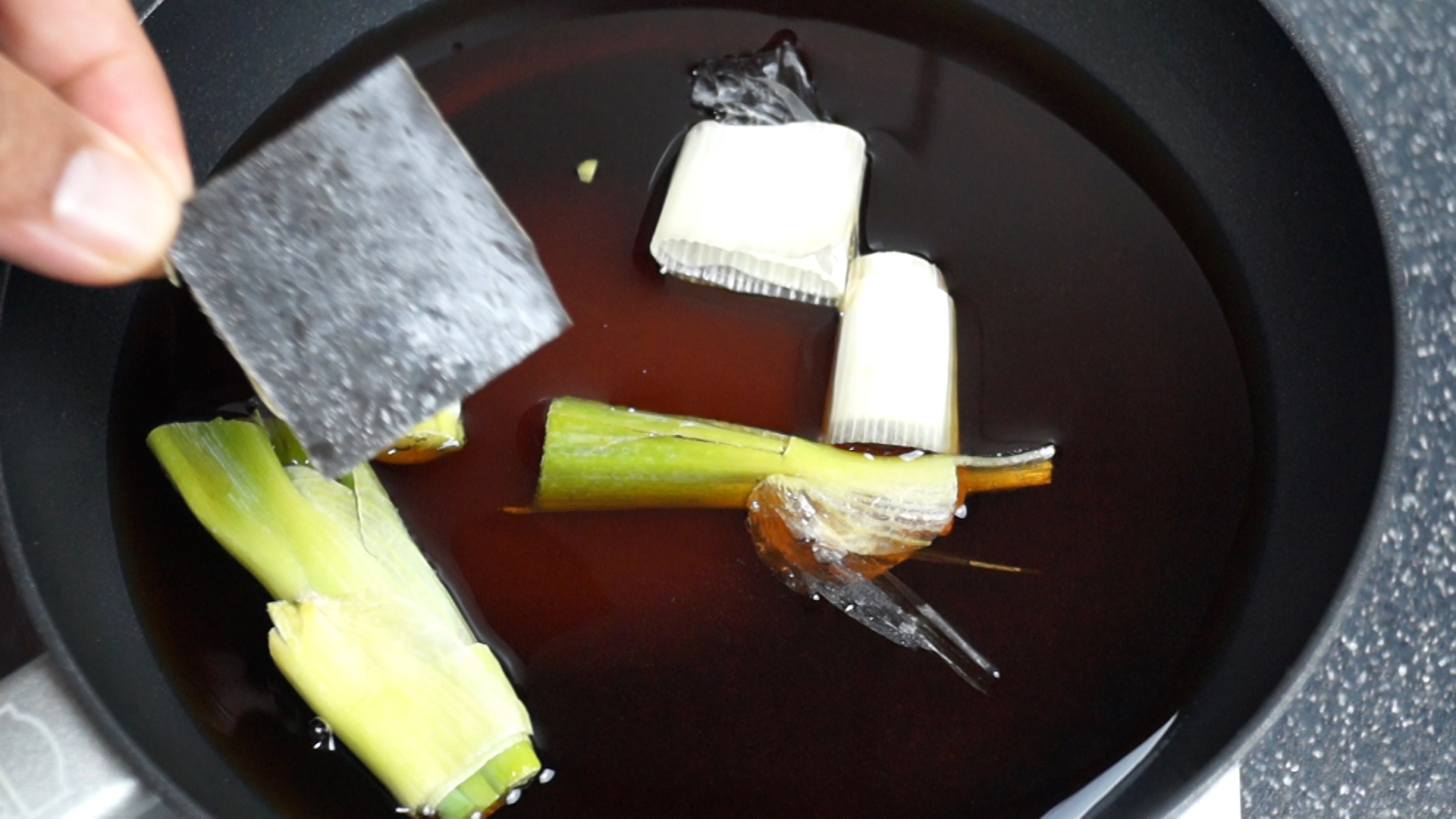 8. 다시마를 찬물 상태 부터 넣은거면 지금 건져내고 끓고 나서 넣은거면 완전히 식힐때 까지 넣어주세요.