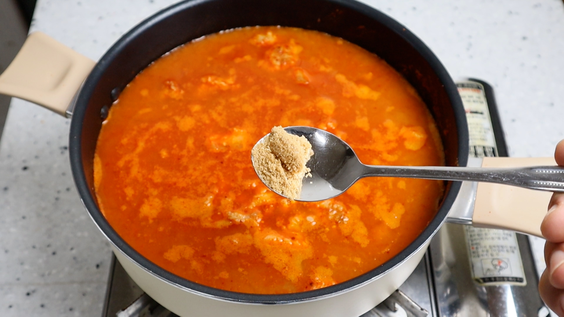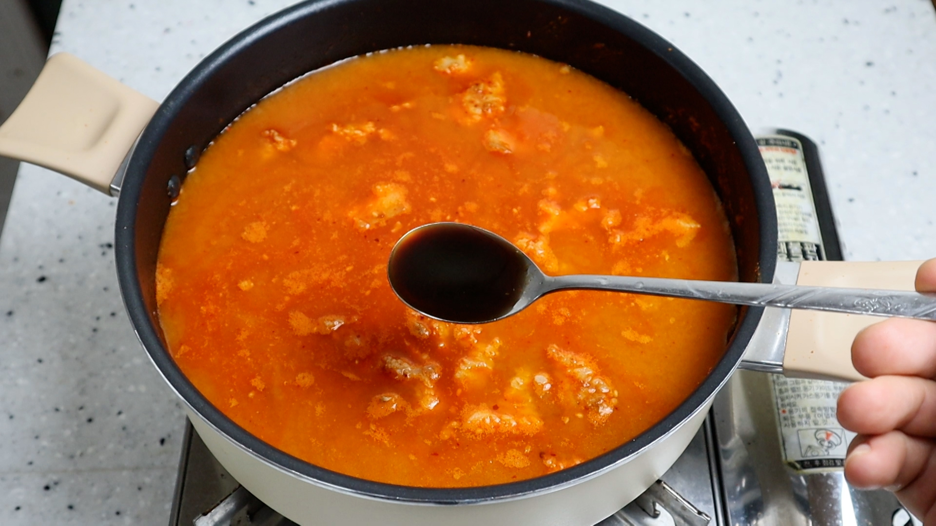 17. 소고기다시다를 넣어주세요. 다시다 거부감 있는 분들은 국간장 1스푼 더 넣어주세요.