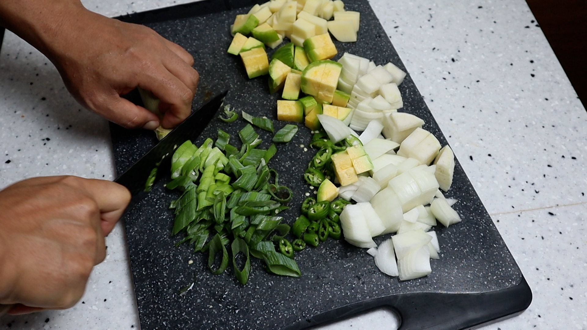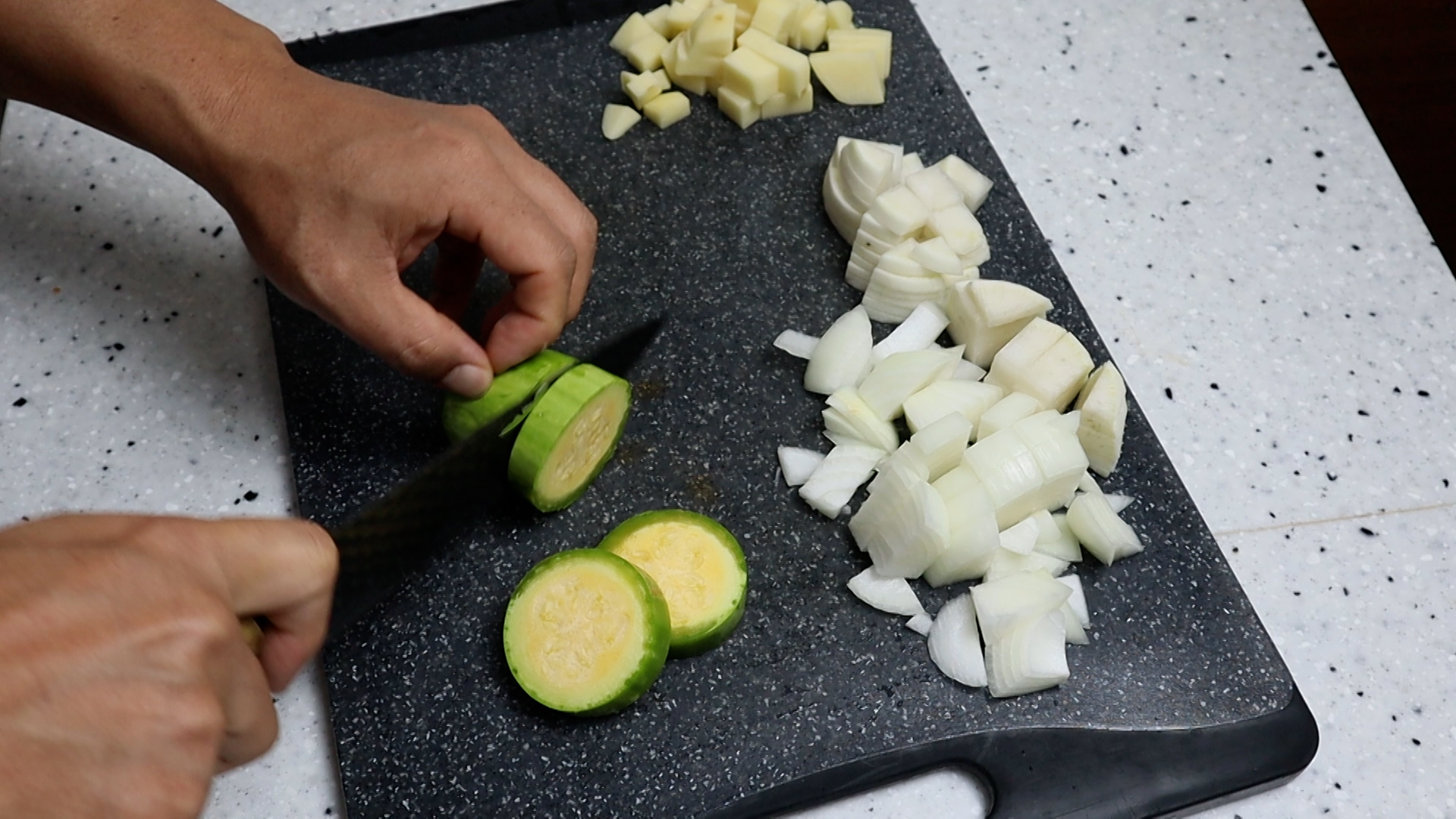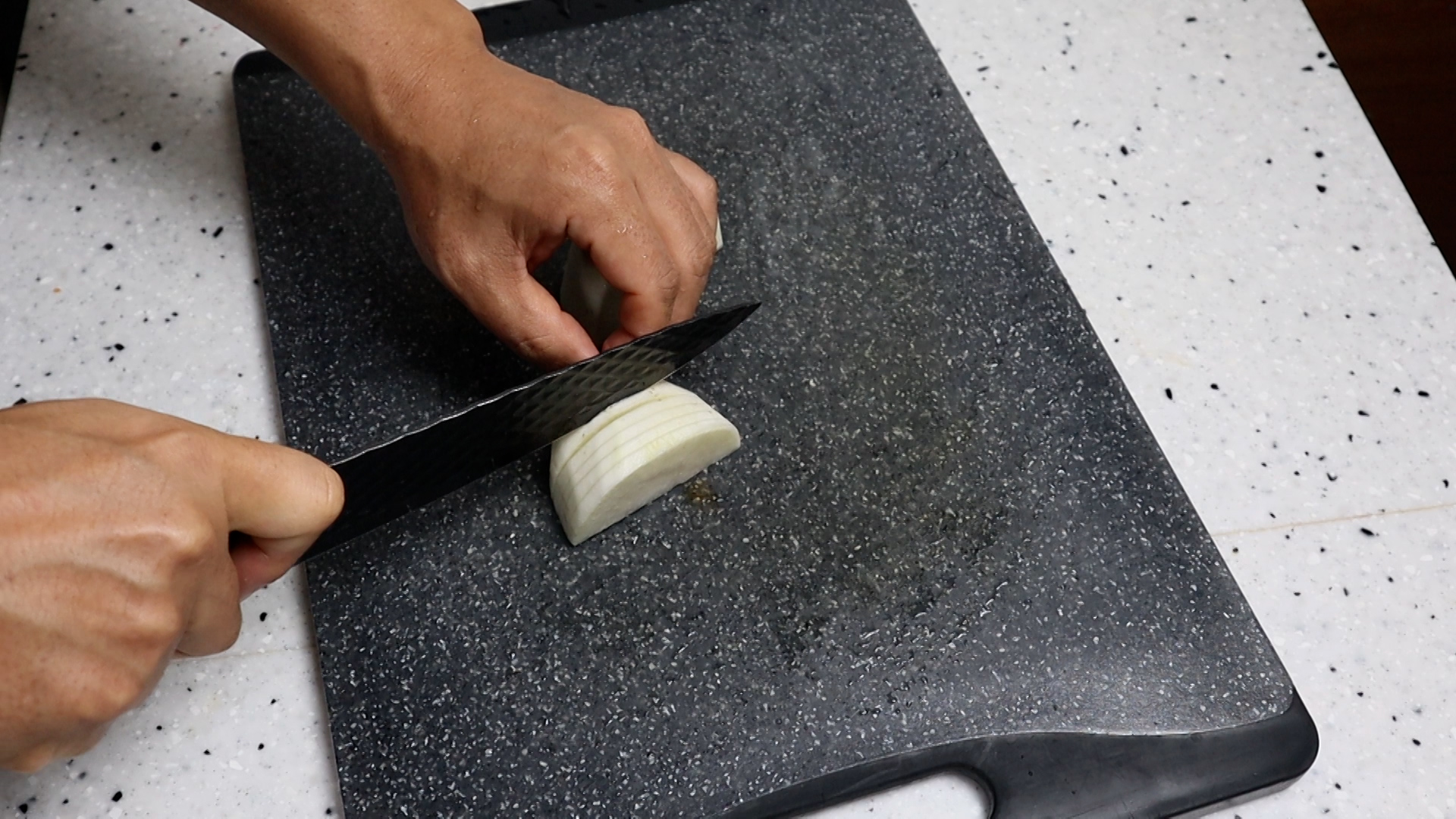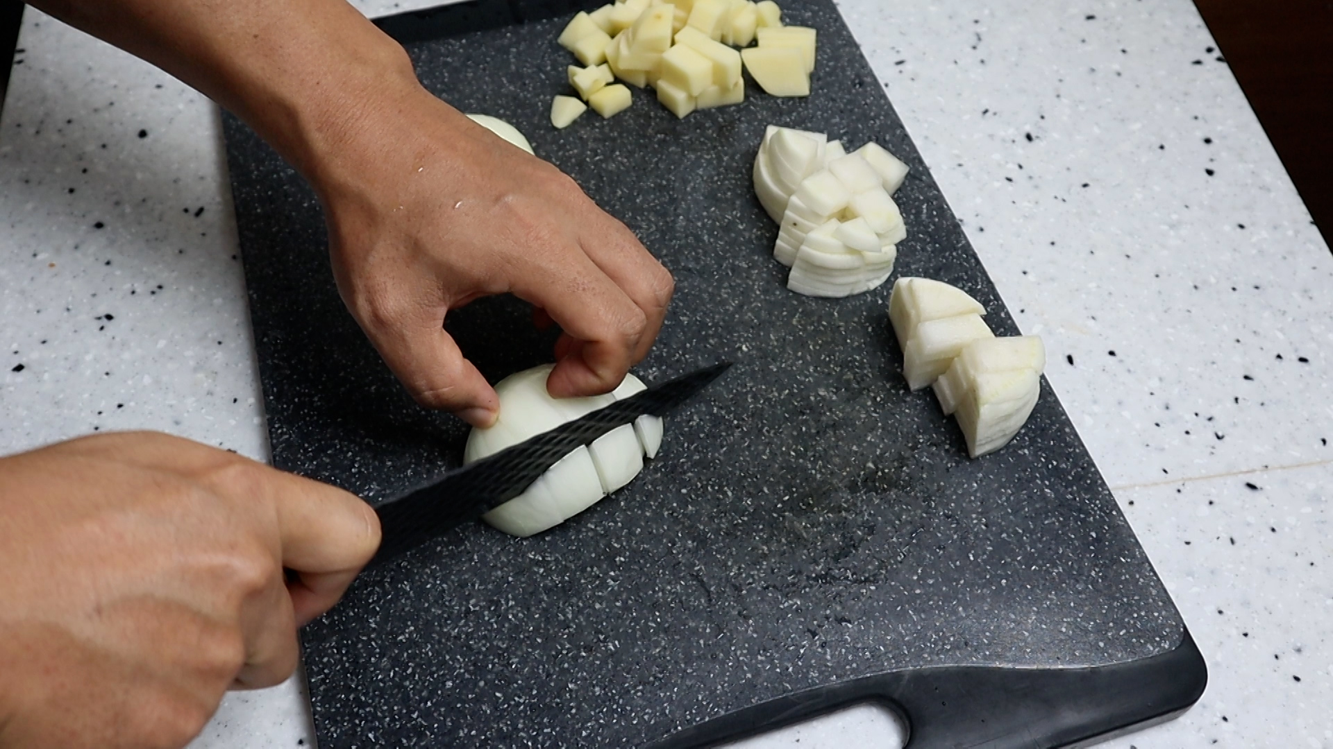 5. 양파는 기호에 맞게 썰어주세요. 저는 대략 3~4cm 크기로 썰었습니다.