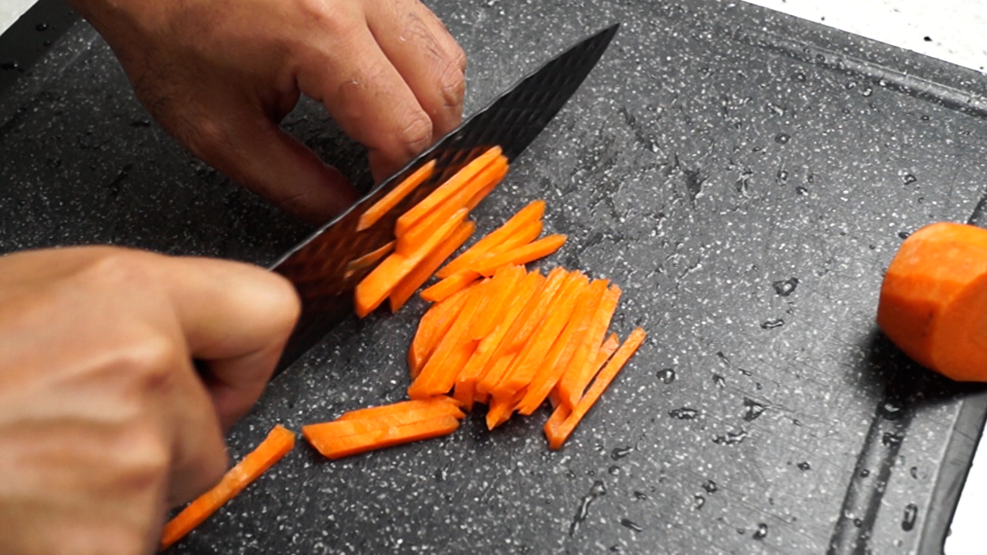 5. 당근은 채를 썰어 준비해주세요.